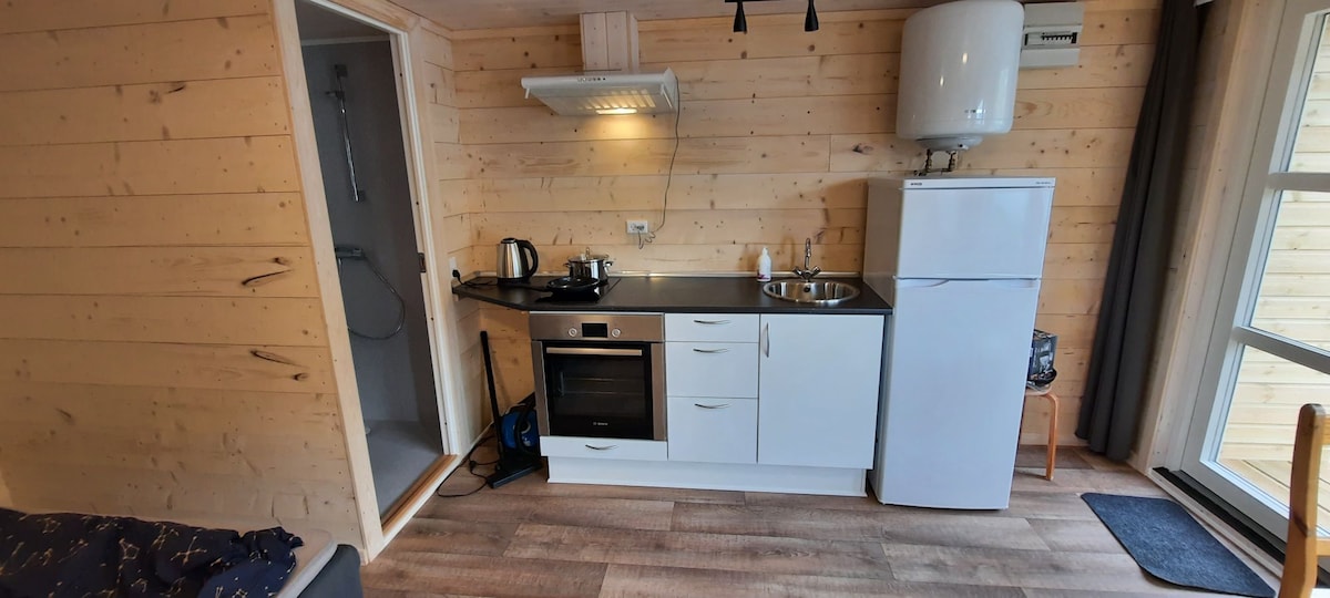 Þetta tiltekna heimili er mjög vel einangrað og hlýtt og það er búið gólfhita sem er mjög þægileg og hlýtt þegar kalt er. Hún er nálægt sjónum og við enda blindgötu. Heimilið er samtals 20 m2 að stærð og er herbergi með eldhúsi og rúmum ásamt nútímalegu baðherbergi með sturtu með miklu heitu vatni. Það er ofn og heitar plötur, gufugleypir. Ísskápur með innbyggðum frysti og öllum öðrum algengum eldhúsbúnaði.