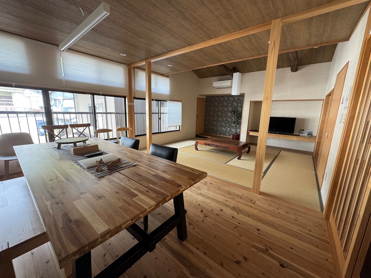 Það var 100 ára gamalt hús í náttúrulegum sveitabæ við sjávarsíðuna og var gert upp til að vera þægilegra og afslappaðra um leið og það heldur gömlum sjarma sínum. Slakaðu á í þessari íburðarmiklu eign með 3 herbergjum í japönskum stíl, sérherbergi í japönskum stíl, stofu (með trégólfi) og borðstofu og eldhúsi. Nostalgísk gömul hús liggja meðfram hverfinu þar sem tíminn virðist hafa stöðvast. Og sjórinn er í 30 sekúndna göngufjarlægð! Þú getur séð Mt. Fuji frá sjónum. * Mælt er með þessari aðstöðu fyrir fjölskyldur. * Kvartanir vegna hávaða aukast tiltölulega mikið þegar fleiri en 5 manns eru aðeins notaðir fyrir karla. Vinsamlegast hegðaðu þér eins vel og í húsreglunum hjá þér. * Þessi aðstaða er gamalt hús byggt fyrir 100 árum.Vegna þunnrar byggingar veggja og glugga er auðvelt fyrir hljóðið að leka út.Þetta kemur einnig fram í húsreglunum en við biðjum þig um að gæta þín á hávaða eftir kl. 21:00. Kvartanir frá nágrönnum geta borist, sérstaklega þegar þær eru notaðar í stórum hópum.Þessi aðstaða er rekin með samvinnu nágranna. Þar sem þetta er íbúðahverfi á landsbyggðinni biðjum við þig um að skilja og vinna saman svo að hvert annað geti viðhaldið mannasiðum og viðhaldið þægilegu umhverfi.