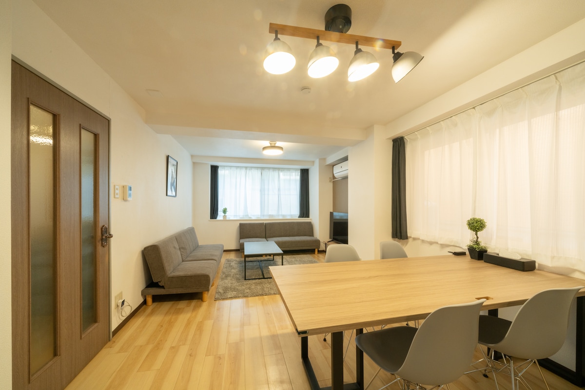 [1] Endurnýjun að fullu x allt að sex manns geta gist Innra rýmið hefur verið endurnýjað að fullu og sameinað með vönduðum húsgögnum með svörtum tón. Lofaðu þægilegri dvöl í stílhreinu og rólegu rými. Baðherbergið og salernið eru einnig ný og mjög hrein. Svefnherbergin skiptast í þrjú herbergi svo að þú ert með einkarými. Þar eru einnig svalir svo að þú getir slakað á um leið og þú finnur fyrir andrúmsloftinu í Sapporo. Þetta er umhverfi þar sem þú getur tekið á móti fjölbreyttum senum eins og fjölskyldu, vinum og fleiru. [2] Subway "Nango 7 Chome Station" 4 mínútna gangur × Matvöruverslun 4 mínútna gangur Gott aðgengi í 4 mínútna göngufjarlægð frá næstu neðanjarðarlest „Nango 7 Chome Station“. Þú getur einnig flutt þig þægilega til miðsvæðanna eins og Sapporo stöðvarinnar, Odori og Susukino með einni neðanjarðarlest. Einnig er stórmarkaður í innan við 2 mínútna göngufjarlægð og því er þægilegt að versla hann meðan á dvölinni stendur. Eldhúsið er einnig með eldunaráhöldum svo að þú getir eldað þínar eigin máltíðir. Hér eru einnig margar matvöruverslanir og veitingastaðir sem eru einstakir fyrir Hokkaido og einnig er mælt með því fyrir þá sem vilja njóta staðbundins matar.Frábær staðsetning fyrir skoðunarferðir eða langa dvöl.