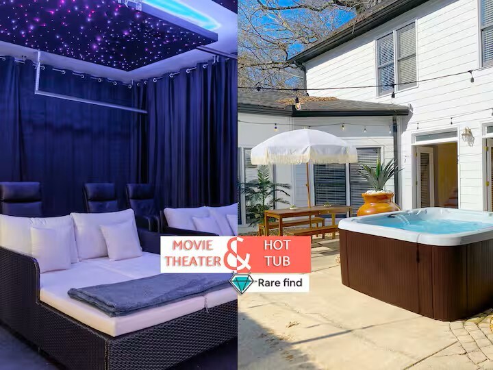 Slakaðu á í stíl í rúmgóðu 4 rúma fríinu okkar með einkahot tub og innanhúss kvikmyndahúsi fyrir stórkostlegar nætur. Opin stofa sem hentar fullkomlega fyrir hópa Hraðvirkt þráðlaust net og snjallsjónvörp Eldhús kokks og kaffibar Aðalsvíta með king-size rúmi Þvottavél/þurrkari fyrir langtímadvöl Málsverð í Midtown, almenningsgarðar og útsýni yfir borgina í nokkurra mínútna fjarlægð. Bókaðu lúxusafdrep í Atlanta í dag!