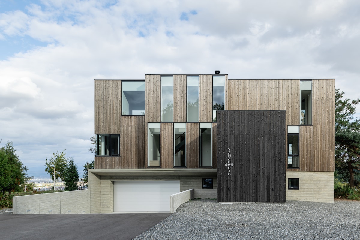 Fjarri öllu. Njóttu glæsilegs útsýnis yfir Daisetsuzan-þjóðgarðinn frá þessum arkitekt sem hannaði A-Frame. Þetta 1 rúmherbergi, smáhýsi með eldunaraðstöðu (29 fermetrar) er fullkomið afdrep fyrir pör og það er hannað með sjálfbærni og þægindi í huga. Hér eru verðlaunaðar innréttingar sem eru framleiddar á staðnum. Það er fullkomin miðstöð fyrir gönguferðir, skíði, veiði, golf og heita lind á svæðinu. Heimilið er í um það bil 30 mínútna akstursfjarlægð frá Asahikawa-flugvelli.