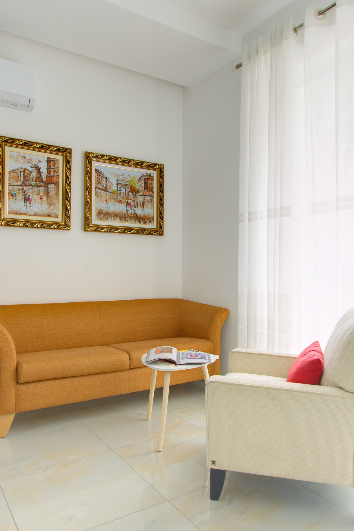 Flott íbúð á efstu hæð í líflegu Blloku sem er fullkomin fyrir allt að þrjá gesti. Njóttu smekklegra skreytinga og nútímaþæginda: loftræstingar, snjallsjónvarps, fullbúið eldhús, uppþvottavél, þvottavél og heillandi svalir. Njóttu þæginda á rúmgóðu baðherbergi með aðskilinni sturtu og frístandandi baðkeri. Skref frá börum, veitingastöðum og Tirana Lake með greiðan aðgang að strætóstöð, gjaldskyldum bílastæðum, líkamsrækt og stórmarkaði. Tilvalin heimahöfn til að kynnast Tírana!