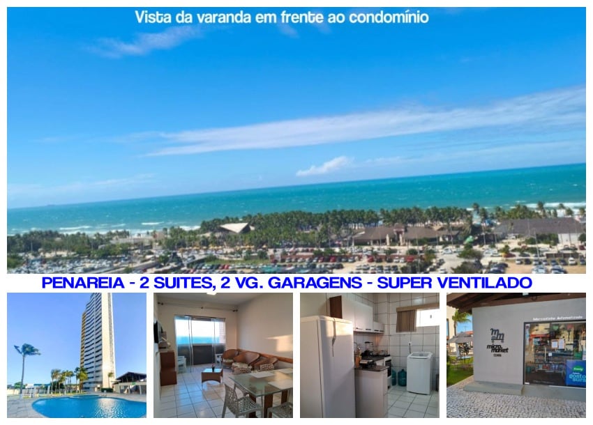 Apartamento em frente a uma famosa praia de Fortaleza com todo requinte de um resort, ao lado do Hotel Vila Galé e no caminho do beach park. Tem 2 suítes, com camas box e ar condicionado. Cozinha completa. Sala com sofá e uma mesa de jantar com 4 lugares. Varanda com armador de rede e uma mesa, uma vista maravilhosa da praia. Condomínio com segurança 24 horas, recepção, área de lazer completa, 4 piscinas, sendo uma com raia.