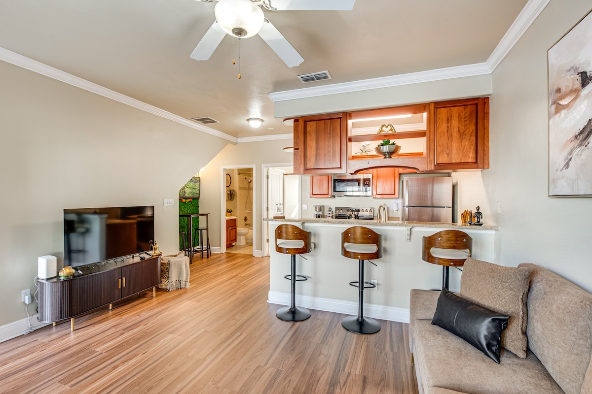 Verið velkomin á The Avenue, glæsilega afdrepið þitt í miðbæ Tallahassee við College Avenue. Þessi nútímalega íbúð er fullkomlega staðsett við IMAX-leikhúsið og í þægilegu göngufæri frá Florida State University, Capitol Building og tugum veitingastaða. Hún er hönnuð fyrir bæði viðskipti og tómstundir. Hvort sem þú ert í bænum á löggjafarþingi, að heimsækja háskólanemann þinn eða upplifa spennuna á leikdagshelginni setur The Avenue þig inn í hjarta alls þessa.