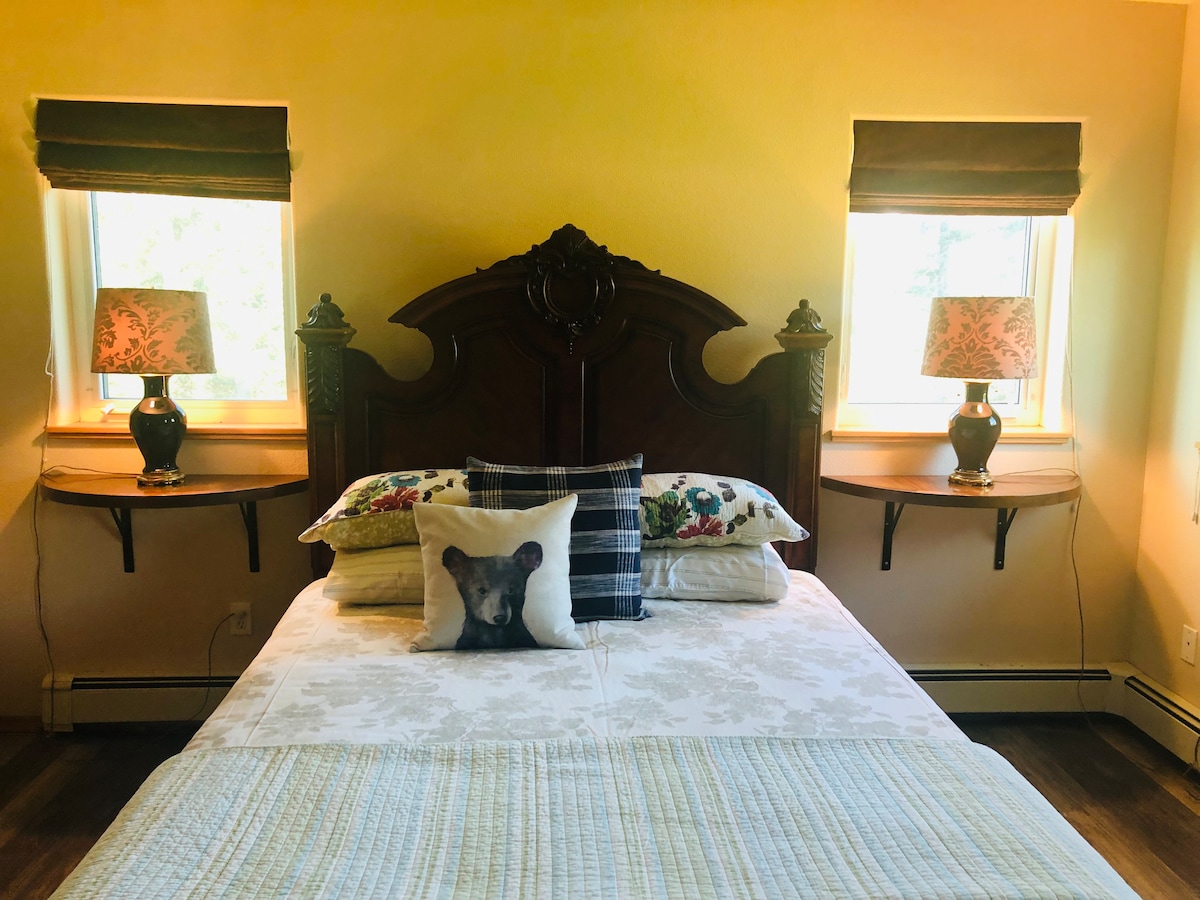 Keep the family together with both the Mt. Wrangle Apartment upstairs and either Wolf Room and or Fox Room downstairs in our house You may reserve the apartment and up to two more queen rooms for a total of 9 people. Wolf and Fox Rooms share a bath. The number of rooms and beds are determined by the number of guests. 6 guests or less get one additional room, or 3 queen beds and a futon. 7 or more guests get two additional rooms, 4 queen beds and a Futon. Book early to be sure of availability.
