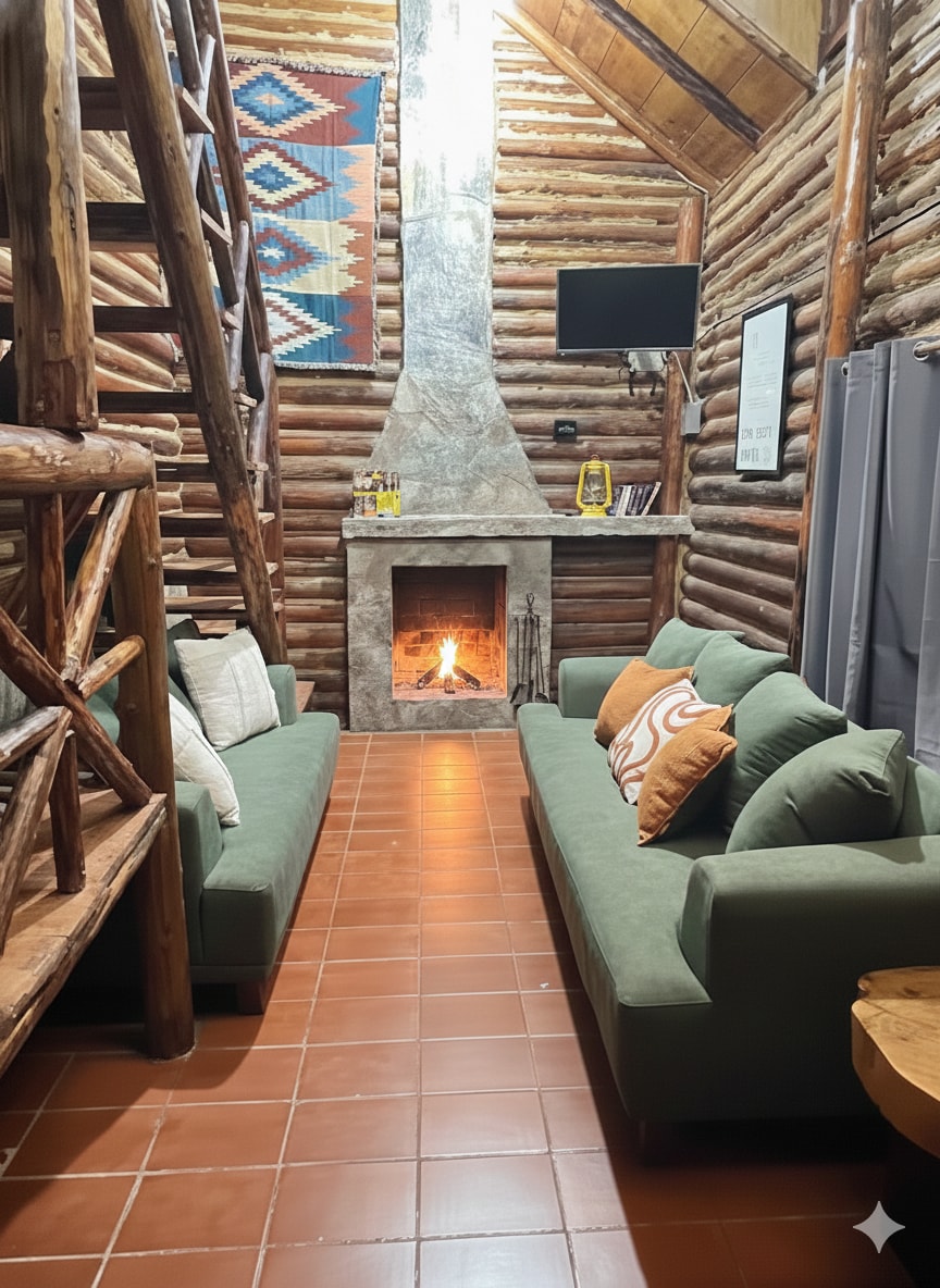 Í fullkominni blöndu af nútímalegri og sveitalegri náttúru og glæsileika bjóðum við þér að kynnast Elena-kofanum sem er hluti af Cabañas La Familia. Elena-klefa er með 1 queen size rúm og 2 svefnsófa.