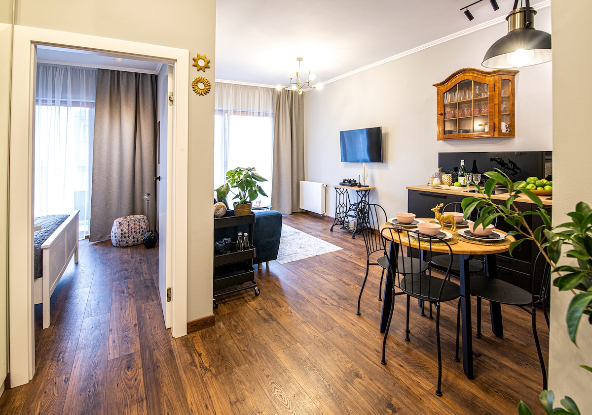 Þessi nútímalega íbúð á háalofti blandar saman hefðbundnu handverki og nútímalegum blæ og skapar hlýlegan og þægilegan stað til að slaka á og njóta líflegs Kraká. Þú munt vera í hjarta alls — aðeins 5 mínútna göngufæri frá lestarstöðinni, Barbican, St. Florian's Gate, aðalmarkaðstorginu og stærsta útimarkaði borgarinnar. Kazimierz-hverfið, fullt af kaffihúsum, börum og götulífi, er aðeins nokkrar sporvagnastoppur í burtu.