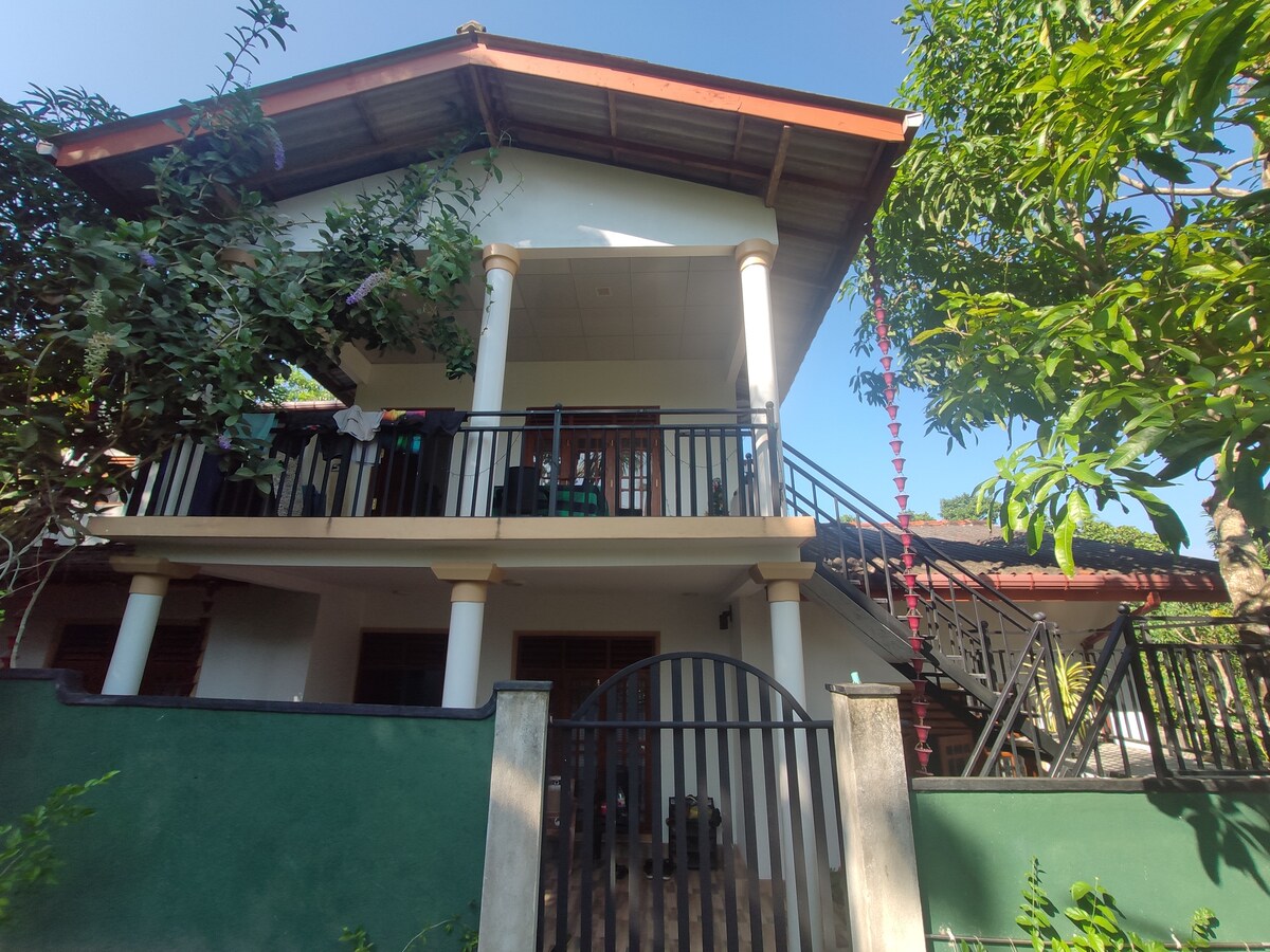 Halló, ég heiti Samanthika og fjölskylda okkar ákvað að taka á móti ferðamönnum á efri hæð rúmgóða hússins okkar sem er nálægt Kabalana-strönd. Við bjóðum þér upp á 2 herbergja íbúð með rúmgóðri verönd og stofu með viftukælingu. Íbúðin er á efri hæð hússins okkar með eigin inngangi. Það er með sérbaðherbergi með heitu vatni og vel búið eldhús. Bæði svefnherbergin eru rúm og búin loftviftu. Allt gott fólk er velkomið :) Samanthika og fjölskylda