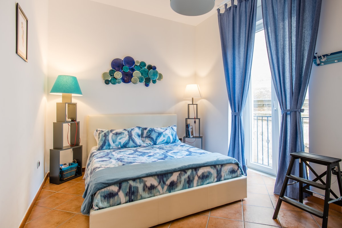 Íbúð tilvalin fyrir par eða litla fjölskyldu. Fágað og fullbúið, risastórt þak með útsýni til allra átta. Staðurinn er beint fyrir framan sjóinn og kastalann. Hún er í aðeins 5 mínútna göngufjarlægð frá Piazza del Plebiscito og bryggjunni og að auki er hún nálægt strætisvagnastöðvum, mörkuðum, veitingastöðum og neðanjarðarlestarstöðinni. Margra ára reynsla af því að taka á móti fólki frá öllum heimshornum.