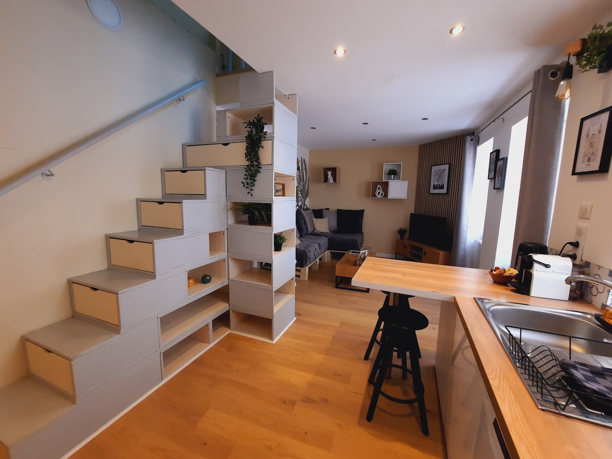 Nálægt veitingastöðum, næturlífi og almenningssamgöngum. Tilvalið fyrir pör og ferðamenn sem ferðast einir. Frábær staður til að leigja fyrir heimsókn stúdíó 15M2 útbúið: 1 stakt clic-clac (120x190 svo FARÐU VARLEGA MEÐ STÓRAR NÝJAR dýnustærðir AU 07/2022) skrifborð, fataskápur, eldhúskrókur: spanhelluborð, ísskápur, örbylgjuofn ketill; felliborð 60x60 hárþurrka 2 handklæði, eldhúshandklæði, KODDAR FYRIR RÚMFÖT Uppþvottalögur, handsápa, sturtugel; sjampó FYRIR KAFFIÐ