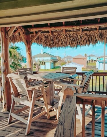 Njóttu sjávaröldunnar og skapaðu eilífar minningar á sjómannaheimilinu okkar. Með þremur svefnherbergjum með 12 og 2 baðherbergjum. Hvort sem þú ert að drekka í þig geisla á rúmgóðri efri hæðinni eða að spila útileiki og njóta drykkja á Tiki-barnum okkar áttu örugglega eftir að skemmta þér vel hér á Rockin V by the Sea. Með stuttri göngufjarlægð eða akstur á ströndina, greiðan aðgang að vinsælum stöðum á staðnum eða ferjusiglingu til Galveston skaltu njóta friðsæla hverfisins Sandy Shores sem heimili að heiman.