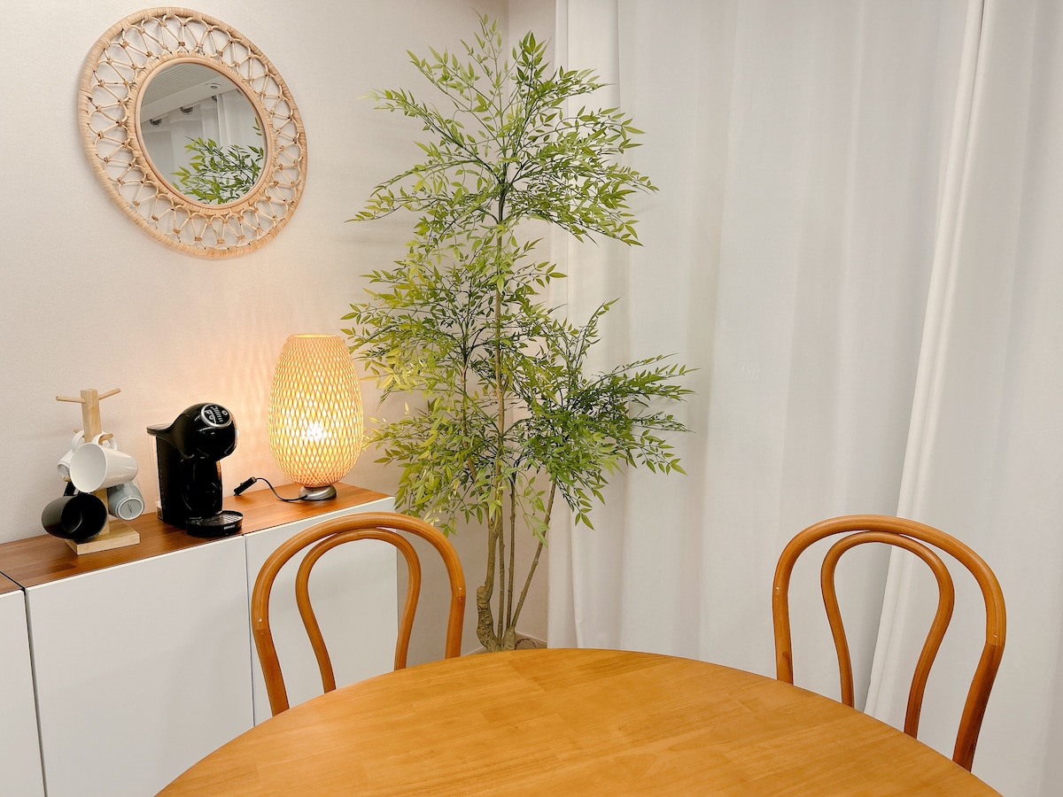 Upplifðu friðsæla og notalega stemningu Under Cloud - rúmgóðs 50m² heimilis með tveimur heillandi svefnherbergjum, stofu með múrsteinum, fallegu eldhúsi og baðherbergi, auka geymslu og notalegum svölum + hengirúmi. Á rólegu en þægilegu svæði með greiðan aðgang að bestu stöðum Seúl og flugvellinum. Smelltu á „sýna meira“. ☛ Fótgangandi Hongdae: 15 mín. | Hapjeong Stn.(Lína 2/6): 8 mín. | 2 verslunarmiðstöðvar: 5 mín. ☛ Með rútu/neðanjarðarlest Incheon-flugvöllur: 50 mín. | Gömul höll: 30–40 mín. | Myeong-dong: 30 mín. | Gangnam: 40 mín.