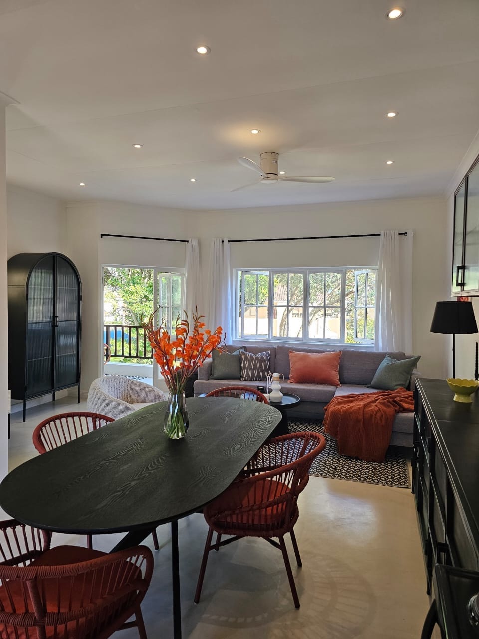Bright new large modern suite set in the secure gated Kanonkop Private Estate surrounded by fynbos. Large sliding doors that open onto deck with garden views and very private. Open plan kitchenette with a comfy couch to relax or watch TV on a smart screen . Super King comfortable bed with 100 percent cotton percale linen. Large bathroom with a rain shower and a his and her basin. 5 minutes into central Knysna, Knysna Waterfront, and Thesen Harbor Town. Uncapped wifi . Simola and Pezula