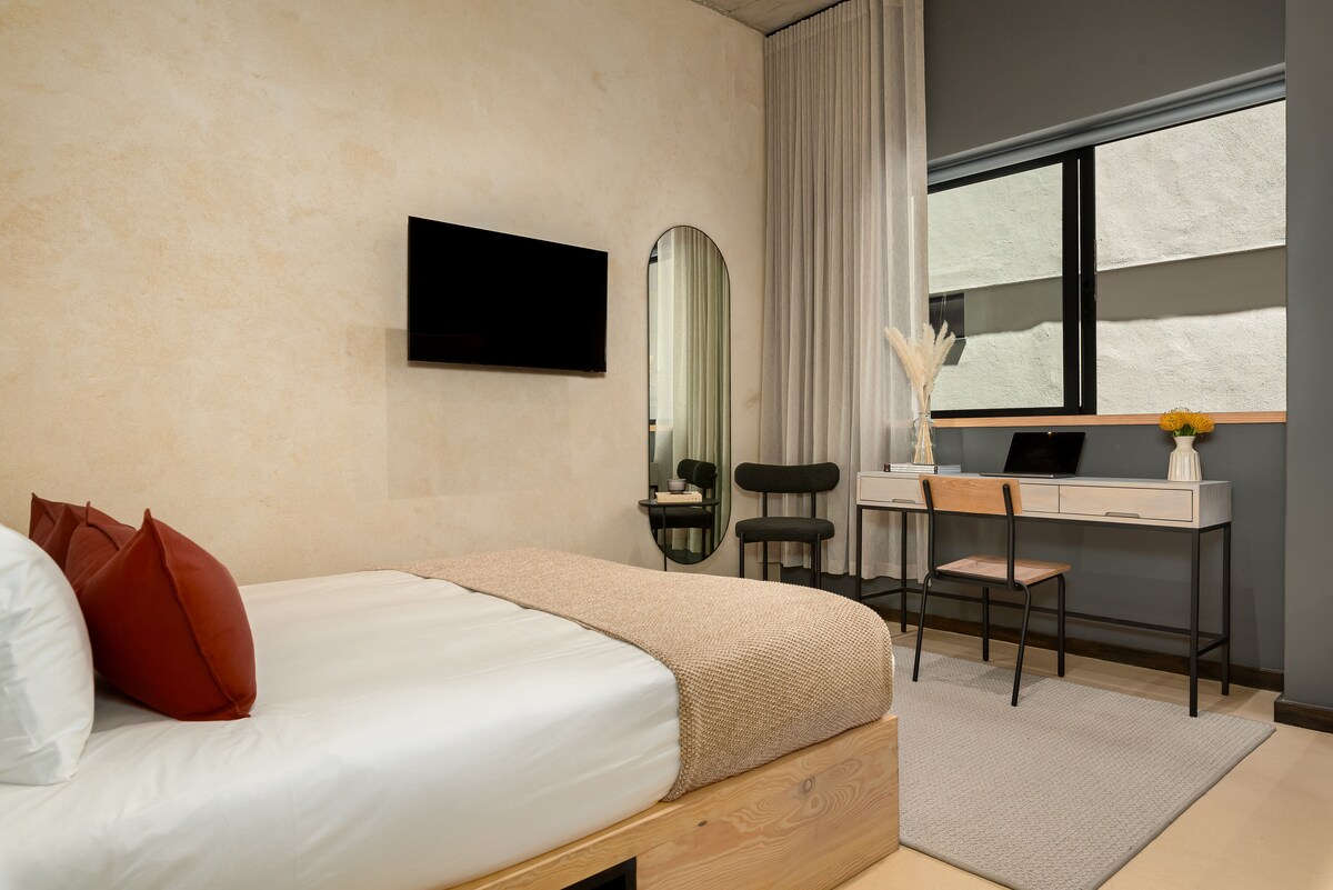 Upplifðu kyrrlátan lúxus Cape 8 Collection gistingar. Þessi íbúð er staðsett í hinu táknræna gamla Höfðahverfi og er friðsælt afdrep í hjarta De Waterkant. Hann er hannaður með úrvalsáferð, myrkvunargardínum og tvöföldu gleri og hér er rólegur staður til að slappa af eftir að hafa skoðað borgina. Njóttu öryggisgæslu allan sólarhringinn, öruggs bílastæðis og útsýnis yfir Tafelfjallið. Hvort sem þú ert hér til að slaka á, elda eða vinna er eignin fullbúin fyrir alla þrjá.