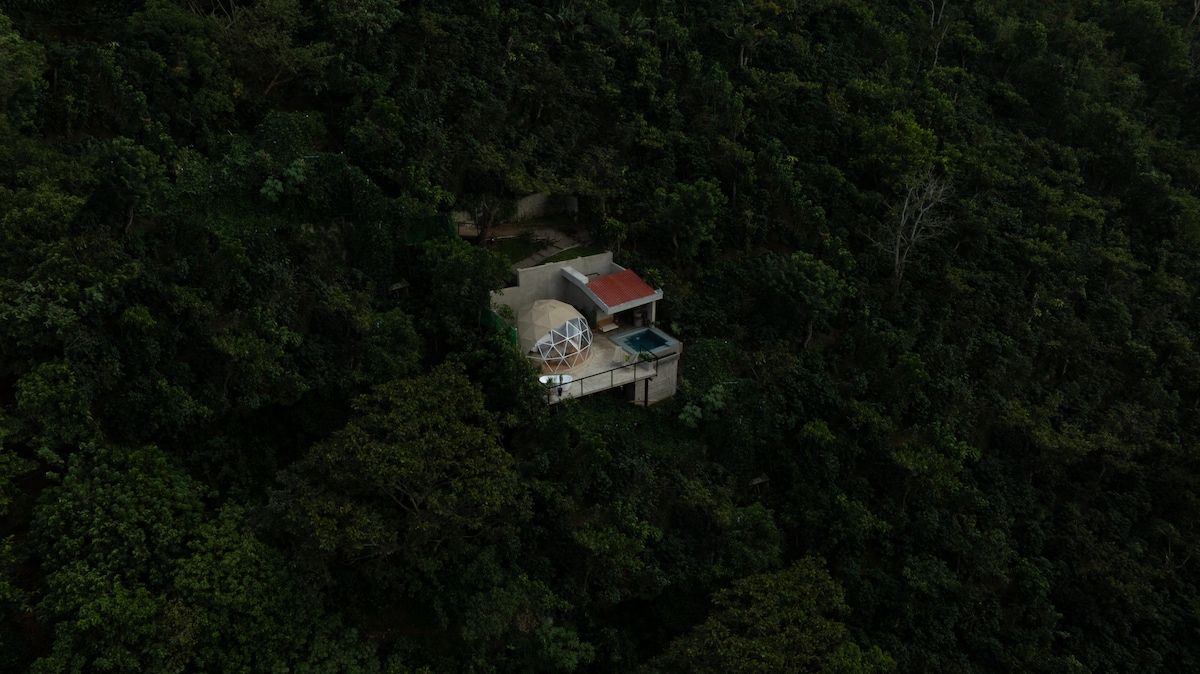 Ímyndaðu þér að vakna í lúxusskála fyrir framan Apaneca-Ilamatepec eldfjallgarðinn? Í „Vista Cabin“, í 15 mínútna fjarlægð frá þorpinu Juayúa, getur þú látið þessa mynd verða að veruleika. Þessi bústaður er hannaður fyrir pör, með queen-rúmi, rúmar þrjá einstaklinga. Stofa með svefnsófa, fullbúið eldhús með bar og borðstofu og pláss fyrir grill og varðeld til viðbótar við þægindi upplifunarinnar. Þessi bústaður er með aðgang að görðum og sundlaugarsvæði samstæðunnar.