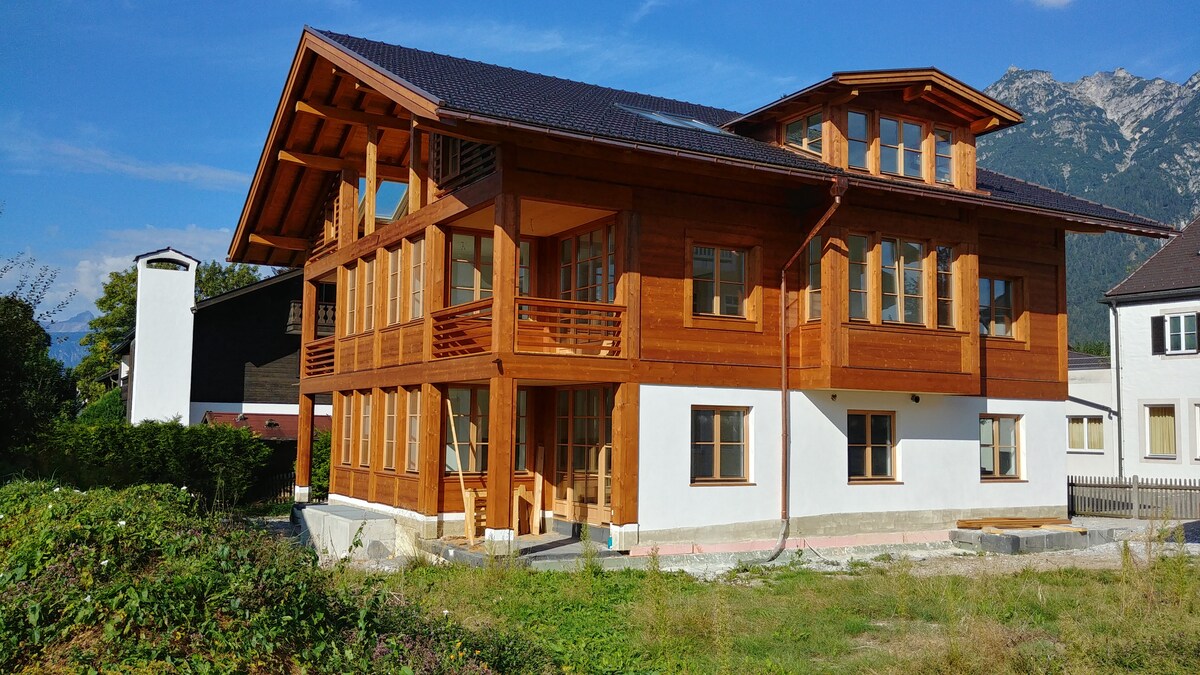 Beautifully restored home "Die Alpe" in Garmisch. We call this apartment Gams or mountain goat. The Gams has natural stone and oak wood floors, a kitchen with cozy seating area, living room, bedroom, second open loft bedroom and modern bathroom. Explore the loving details to be found throughout the apartment. Our goal is that you look forward to returning "home" at the end of a full day of sports or sightseeing. You can walk to shops/restaurants/bars in 5 min. Enjoy and relax during your stay!