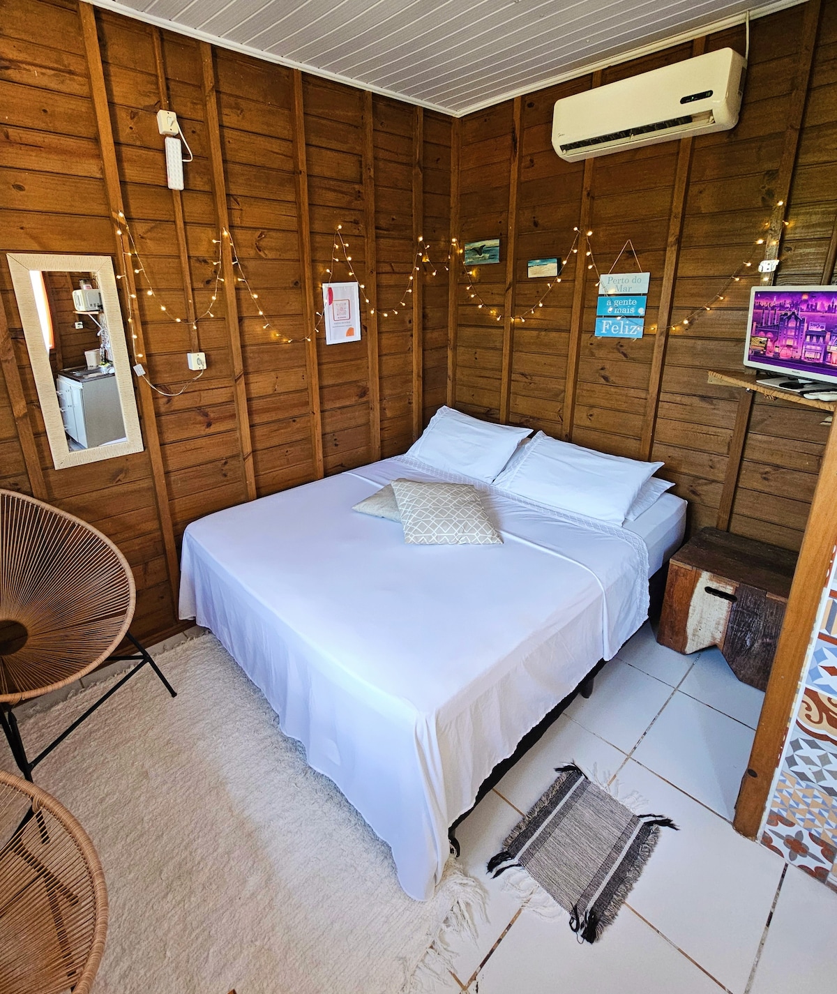 Í Cabana Vermelha munt þú upplifa algjöra tengingu við náttúruna. Ímyndaðu þér að vakna við fuglahljóðið og bragða á kaffi á svölunum, umkringt trjám og ferskleika morgunsins. Eignin er staðsett í Condomínio Maranata með einkaaðgang að Lagoa de Ibiraquera og býður upp á magnað sólsetur. Auk þess er það fyrir framan SURFLAND BRASIL. Við erum í aðeins 5 mínútna akstursfjarlægð frá Ouvidor-strönd og Rosa Norte-strönd.