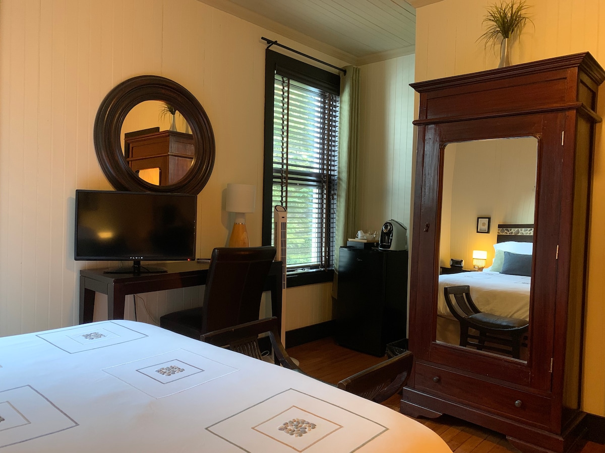 Historic Governor 's Mansion riverside inn museum with comfortable guest rooms. Róleg staðsetning með stórkostlegu útsýni. Tilvalin staðsetning fyrir þá sem leita að persónulegri og einstakri upplifun á sjálfstæðri eign í eigu fjölskyldunnar sem hefur verið starfrækt í meira en 45 ár. Fyrrum timburbarónalóð. Þessi tveggja svefnherbergja svíta er með king-rúm í öðru herberginu og tvö hjónarúm í hinu og eldhúskrók. Ef þú kannt að meta sögu og menningu er staðurinn okkar fyrir þig! Athugaðu: Allur skattur er innifalinn í verðinu.