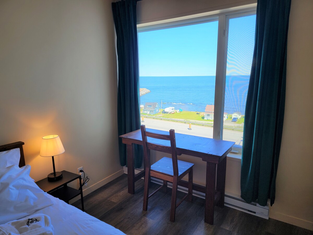 Mjög gott lítið herbergi með sjávarútsýni í Auberge Bleu sur Mer í Port-Daniel. Þrír stórir gluggar opnast að Port-Daniel Bay og þar eru einnig litlar einkasvalir. Mjög stór sturtuklefi með sjávarútsýni líka! Morgunverður, ekki innifalinn, í boði á háannatíma. Ef þetta herbergi er ekki lengur laust skaltu hafa samband við okkur, við erum með aðrar gistieiningar. Við hlökkum til að taka á móti þér! (CITQ-leyfi 090145)