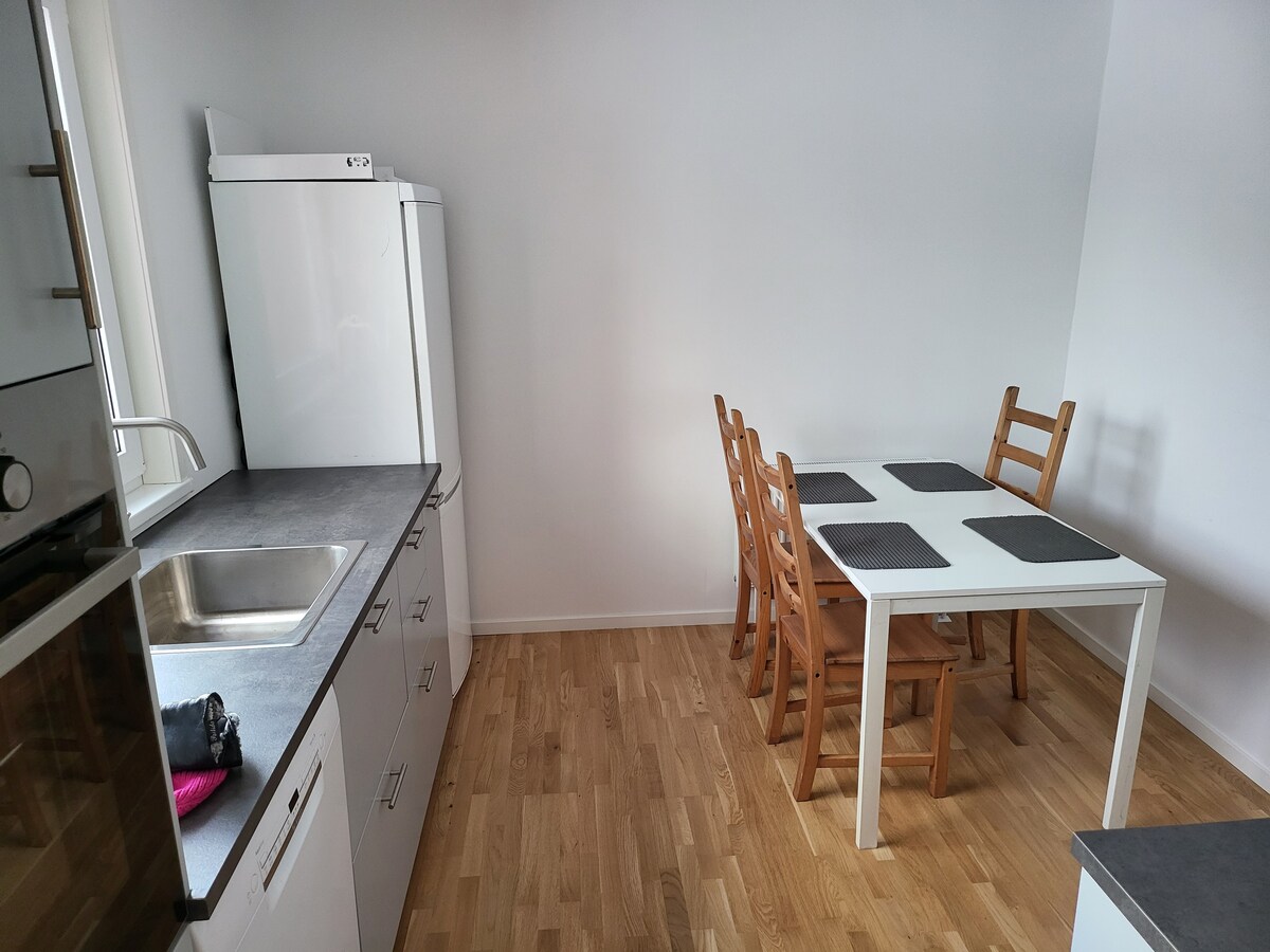 Verið velkomin í ferska og nýuppgerða gestahúsið okkar í hinu vinsæla Hemlingby, Gävle. Hér býrðu þægilega í náttúrunni handan við hornið, aðeins í 5 mínútna fjarlægð frá miðborginni. Fullkomið fyrir fjölskyldur, pör eða vini í leit að kyrrð og nálægð við útivist. Slakaðu á með fjölskyldunni í þessu friðsæla rými. Fullkomið bæði fyrir stutta helgardvöl og lengri vinnuferðir.