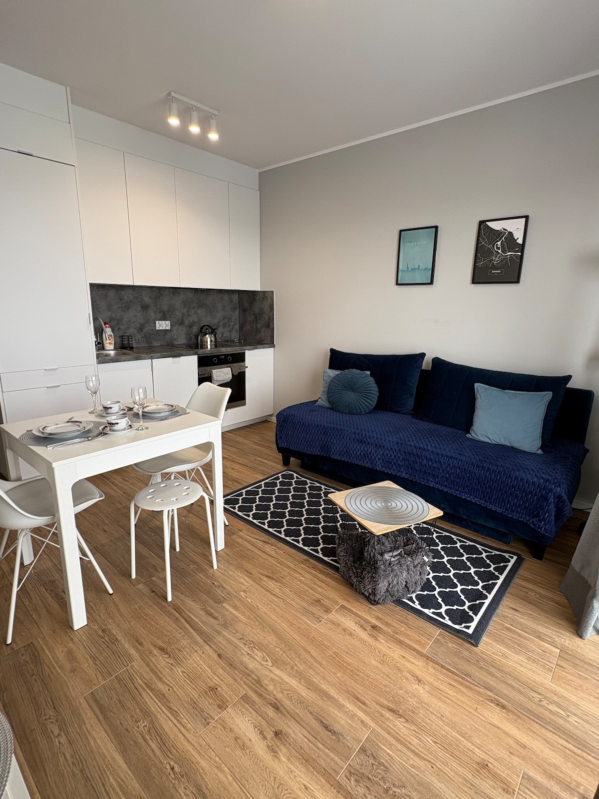 Þetta einstaka stúdíó mun uppfylla væntingar jafnvel kröfuhörðustu gestanna. Fullkomnar innréttingar fyrir rómantíska dvöl aðeins fyrir tvo sem og önnur tilefni til að eyða frábærum tíma í og í kringum Gdansk. Íbúðin er undirbúin fyrir dvöl 4 gesta vegna þess að það er svefnsófi í setustofunni, þaðan er einnig fullbúinn eldhúskrókur og borðstofa. Dökk en ekki yfirþyrmandi hönnun setur rómantíska og tómstundamiðaða stemningu.