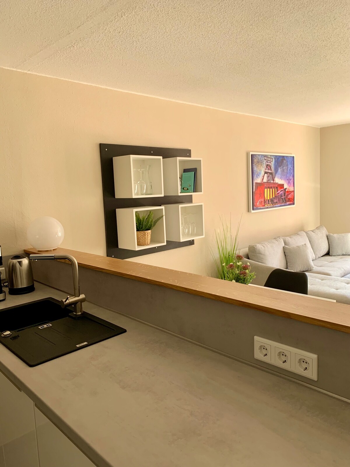 Heillandi, lítil íbúð með svölum fyrir 2 manns, um 2,5 km í miðbæ Bochum, lætur þér líða eins og heima hjá þér meðan á dvölinni stendur - sem vinnu- eða menningarferðamenn: fullbúið eldhús, rúmgott baðherbergi, notalegt svefnherbergi með hjónarúmi. Innviðir: Matvöruverslun í hverfinu, ýmsir matarvalkostir og veitingastaðir í göngufæri. Tenging við þjóðveganetið er einnig nálægt, mjög gott aðgengi að almenningssamgöngum