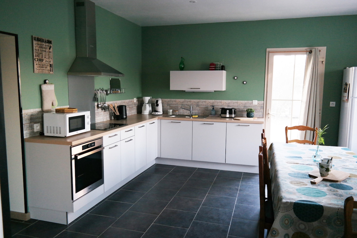 Staðsett í sveitinni 400m frá Loire , á Loire hringrásinni á hjóli (50m)milli Angers og Saumur . Sjálfstætt og samliggjandi húsnæði í íbúðarhúsinu okkar Jarðhæð: 1 aðalherbergi á 40M2 , með fullbúnu eldhúsi, borðstofu, setusvæðiTV 1 þvottahús WC Ánægjuleg verönd, lokaður garður, garðskúr Uppi: 2 svefnherbergi með hjónarúmi 140 x 200 , 1 baðherbergi + salerni Öll handklæði og rúmföt eru til staðar, rúm Barnagæsla er í boði sé þess óskað.