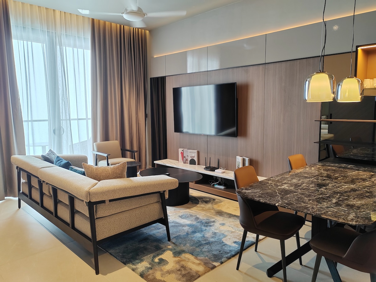 Modern Antara Genting Highlands apartment with bright living room, Smart TV, Astro streaming, high-speed WiFi, and an Automatic Mahjong Table for family fun. Open dining, cozy bedrooms with TVs, and stylish décor. Walking to Genting Casino, SkyWorlds Theme Park, Arena of Stars, SkyAvenue Mall, and Genting Cable Car within 15 minutes by the Link Bridge. —perfect for family or group getaways.