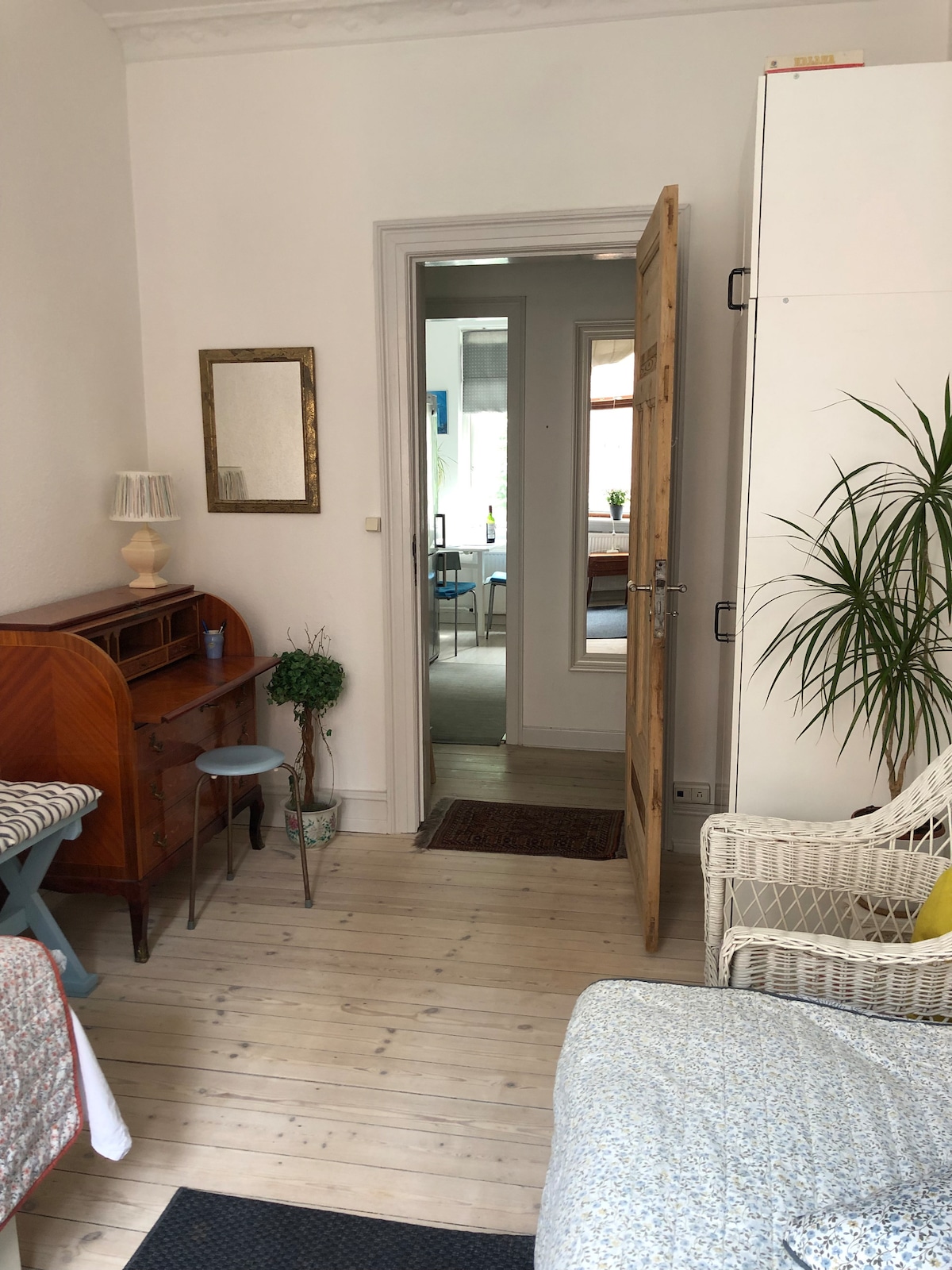 Smuk lys 100 m2 lejlighed på 1. sal i en gammel patricia villa, med en dejlig lille sydside balkon. Du er 1 km fra havet, og den dejlige hvide sandstrand Hellerup. Lejligheden har en stor stue og spisestue med pejs og balkon mod haven. To soveværelser. Meget fint køkken med alle behov, opvaskemaskine, Miele vaskemaskine og tørretumbler. Nyt badeværelse med brusebad. Adgang til meget hyggelig have. Oplev inden for gåafstand: Hellerup strand, shopping, restauranter, design og supermarked.