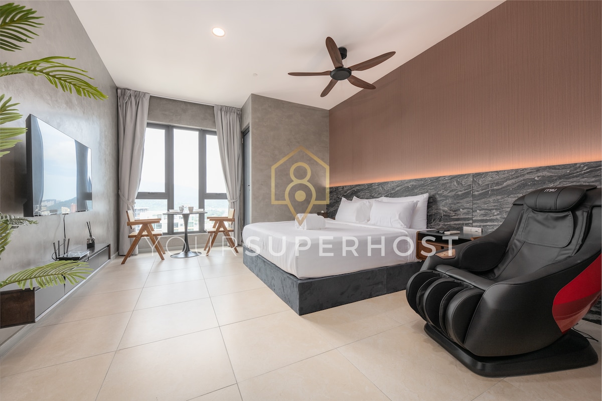 Welcome to 22 Macalisterz @ Georgetown — Premium Suite, where modern elegance meets Penang’s heritage charm. Located in the heart of George Town, It offers the perfect balance of comfort, design, and panoramic views. Wake up to breathtaking sights of Komtar, George Town’s heritage skyline, and a sparkle of the sea — all from the comfort of your bed. Whether you’re visiting for work, a romantic stay, or a urban getaway, our suite promises a hotel-quality experience with the warmth of home.