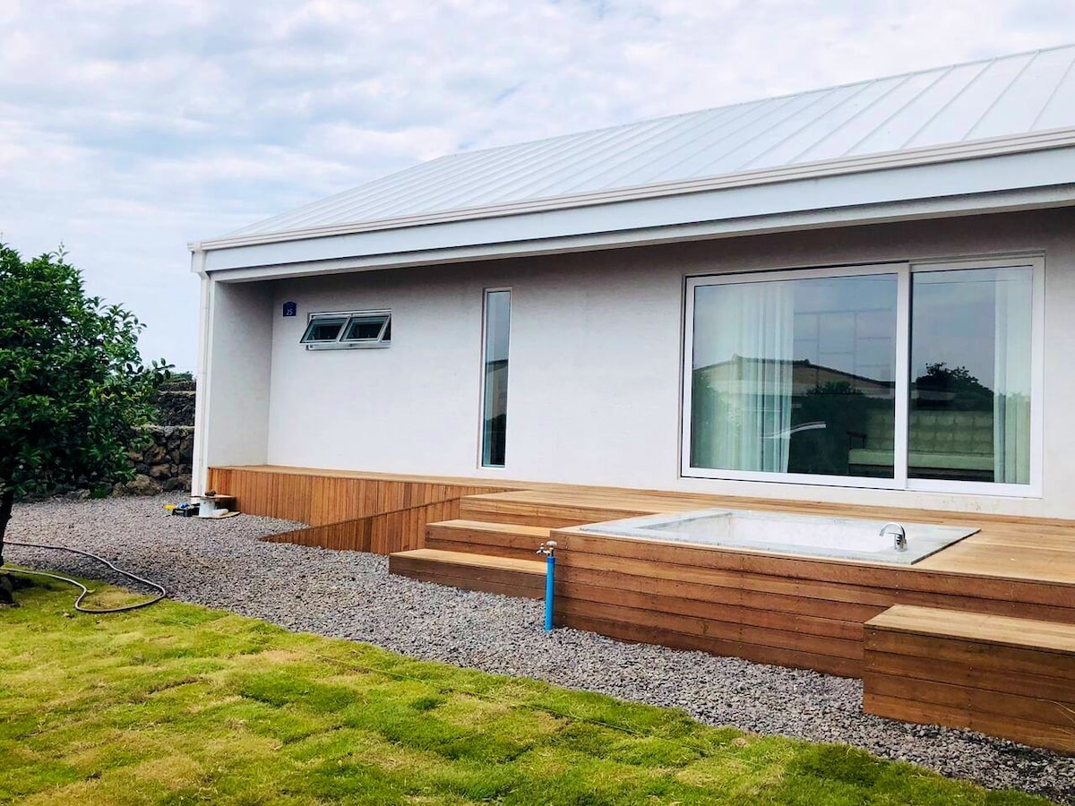 Sand&Milk - Sand er ráðlagt fyrir þetta fólk. Pör, fjölskyldur og litlir hópar sem leita að einkahúsnæði Fólk sem vill slaka á í ró og njóta þess að vera í heima í nuddpottinum og við arineldinn Fólk sem kann að meta tilfinningaþrungna rými og innréttingar Fólk sem sækist eftir þægilegri gistingu með félagsskap og hreyfingu Leiðbeiningar fyrir 🛋 rými Stofa og eldhús / 2 svefnherbergi Sérbaðherbergi fyrir hvert svefnherbergi → Þetta er bygging þar sem þú getur gist þægilega með félögum. Hátt til lofts, há húsgögn og leikmunir frá öðrum heimsálfum Þetta er einkagististaður með hlýju og framandi andrúmslofti. Gestgjafinn smíðaði húsið sjálfur og lagði mikla vinnu í smáatriðin. ♨️ Nuddpottur og 🔥 eldstæði Nuddpottur með útsýni yfir náttúruna Ljúktu deginum rólega með kvöldverði. ☕ Einföld dögurð og kaffitími Þannig að þú getir notið einfaldrar dögurðar Við höfum útbúið hráefni fyrir morgunverð og eldhúsáhöld. 🎬 Úrval af þægindum Uppþvottavél / þvottavél / þurrkari o.s.frv. Þú getur gist þægilega jafnvel þótt þú komir aðeins. Þetta er skráð gistiaðstaða sem er opinberlega skráð sem nr. 1298 í Aewol, Jeju.