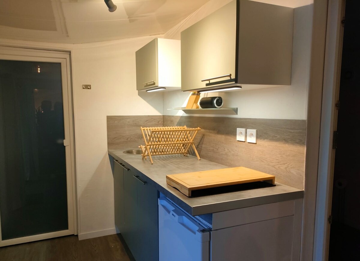 24m² íbúð staðsett í Choisey á 1. hæð án lyftu Nýtt baðherbergi síðan 12. apríl 2024 A39 aðgangur (útgangur 6) í minna en 5 mínútna fjarlægð Á bökkum EUROVELO 6 Búin eldhúsi með innbyggðum ofni, örbylgjuofni, keramik helluborði, ísskáp með frystihólfi og katli Búin með trefjum og 80 cm sjónvarpi 140x190 rúm með EPEDA dýnu Rúmföt eru til staðar Eitt úthlutað bílastæði