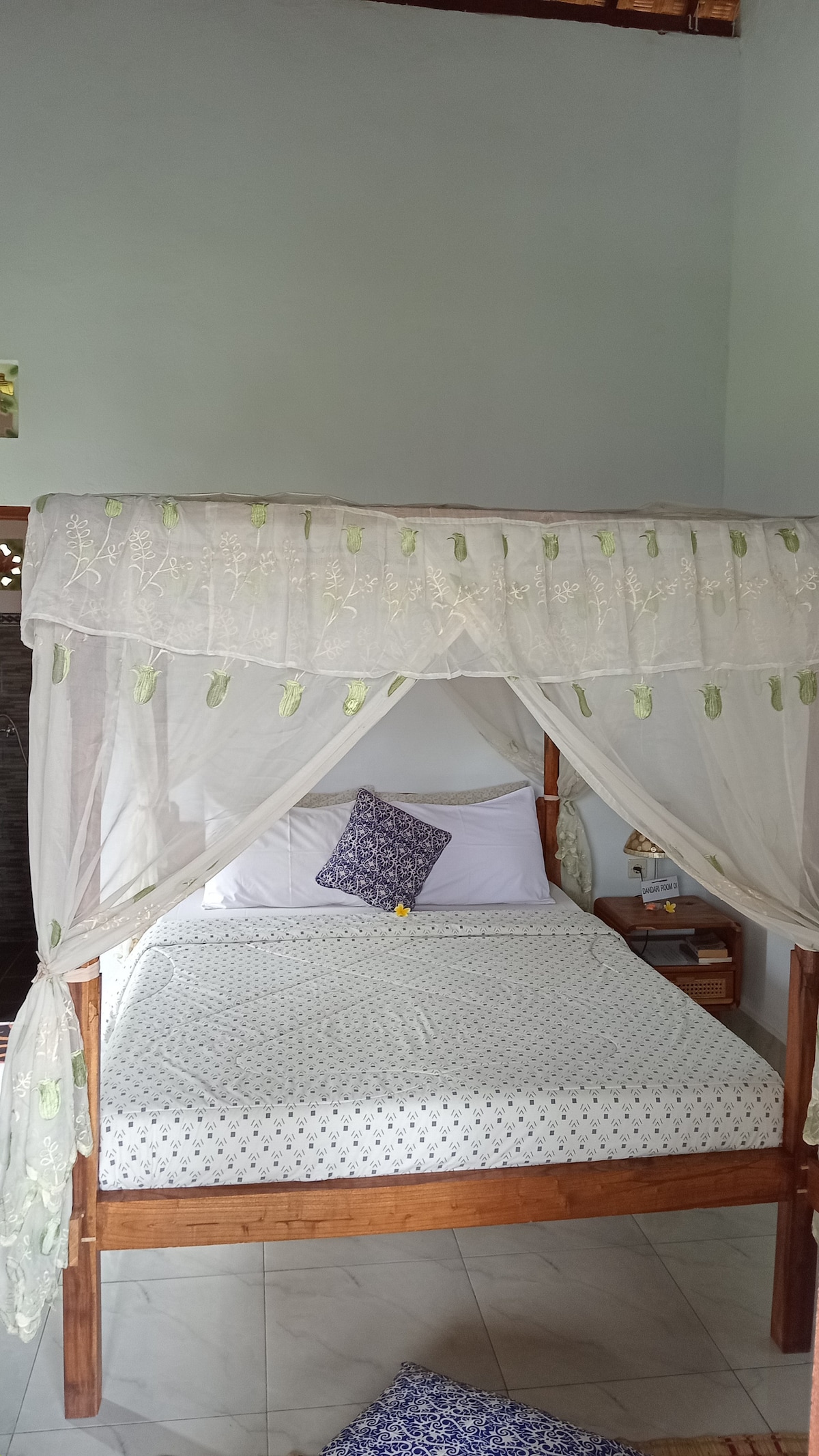 Rúmgóð og þægileg herbergin okkar eru með queen-size rúmi og bjóða upp á heita og kalda sturtu, aðgang að þráðlausu neti,viftu og loftkælingu . Morgunverður er innifalinn. Við erum staðsett í aðeins 700 metra fjarlægð frá Monkey Forest og í 10 mínútna göngufjarlægð frá miðbæ Ubud. Im einnig veita leigubílaþjónustu til að taka upp,skila,dagsferðir um Ubud: Hrísgrjónaverönd Heilagt vatnshof Kaffiplantekran Fílahelluhof Flúðasiglingar á sólarupprás Matreiðslukennsla í hjólreiðum O.s.frv. Vinsamlegast biddu mig um frekari upplýsingar:)