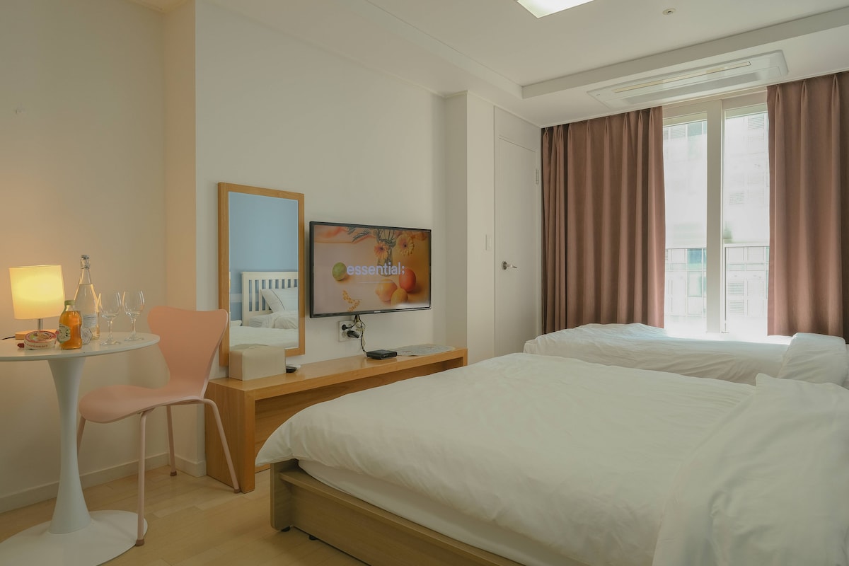 Nýtt opið 28. júlí,✨ 24. ✨Öll herbergi Terrace Ocean View Framúrskarandi Sealy rúm fyrir✨ fullkomna afslöppun Ferskar sérbaunir með kaffi sem er ristað beint á frægu kaffihúsi í✨ Kóreu (sjálfskapað!) Staðsett við ✨hliðina á Songdo Cable Car, nálægt Songdo Beach ❤️Herbergið er úthlutað af handahófi og því skaltu hafa í huga að innan og fjöldi hæða getur verið frábrugðinn myndunum. 📺Raftæki: Sjónvarp með Netflix (með eigin aðgangi), ókeypis þráðlaust net, stök loftræsting, lofthreinsari, veggpúði, ísskápur, Nespresso-kaffivél, hraðsuðuketill, spanhellur 🍳Eldhúsáhöld: nauðsynjar fyrir eldun og borðbúnaður, vínglös, eldhúsþvottaefni og svampur Nauðsynjar fyrir🛁 baðherbergi: sjampó, hárnæring, líkamsþvottur, vatnssápa, handklæði, hárþurrka, hárblásari