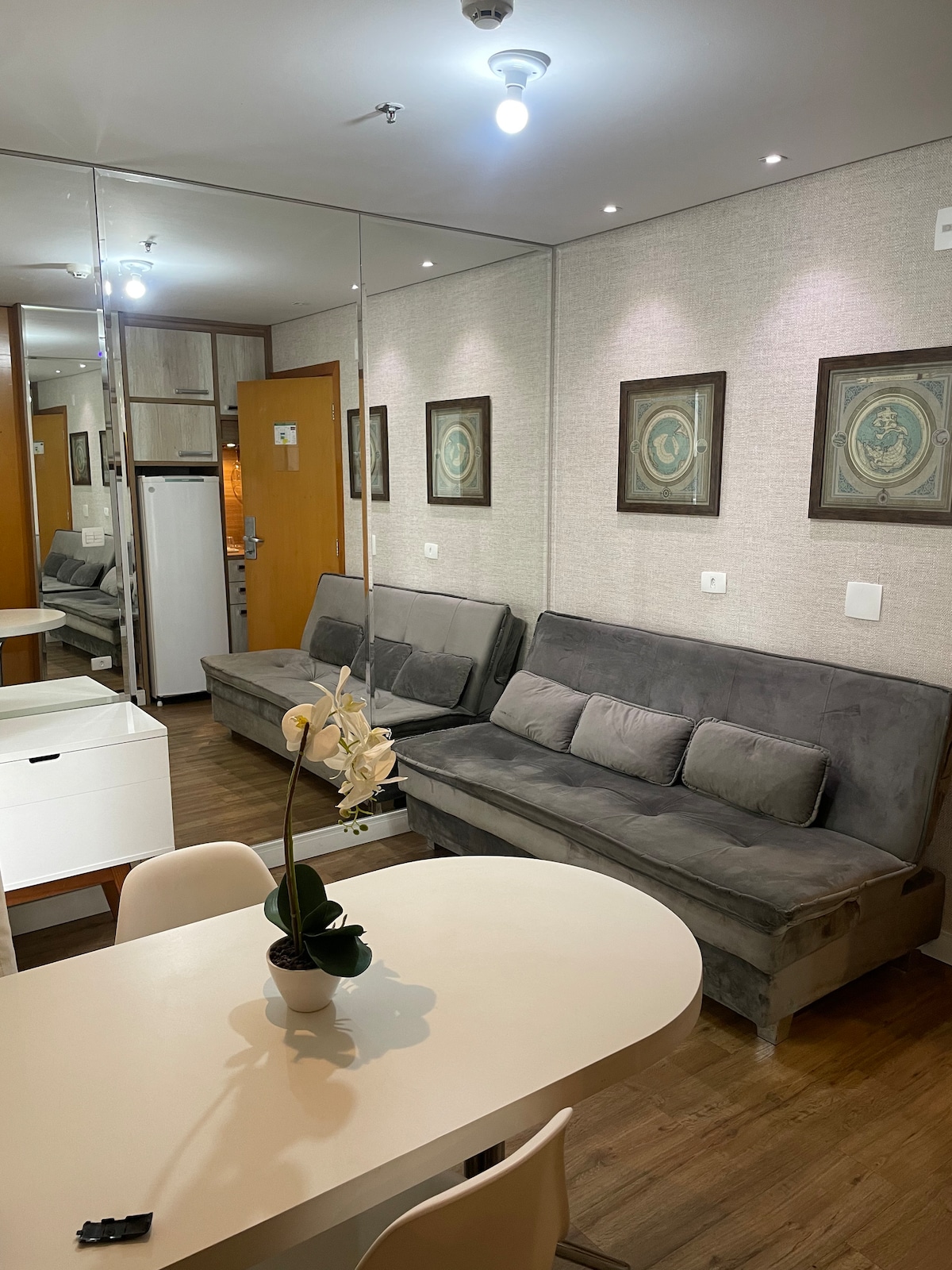 Studio com decoração moderna. Localizado nos Jardins a poucos passos da Av. Paulista e da estação metrô Trianon-Masp. Próximo a shoppings, restaurantes, supermercados e com rápido acesso ao Aeroporto de Congonhas.