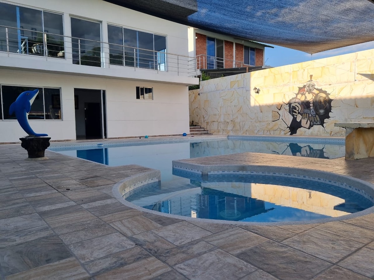 Villan er staðsett 10 húsaröðum frá aðalkirkju Melgar á malbikaðri vegu og rúmar 25 gesti í 7 herbergjum með sérbaðherbergi, kapalsjónvarpi og viftu (1 með loftkælingu). Það er með einkasundlaug, stofu, búið eldhús, jarðgas, ísskáp, grill, þráðlaust net, borðspil, bolirana, borðtennis, körfubolta, tennisvegg og bílastæði fyrir 5 bíla. Allt húsið er leigt út til eins hóps til að veita næði. Verðið er á nótt á mann