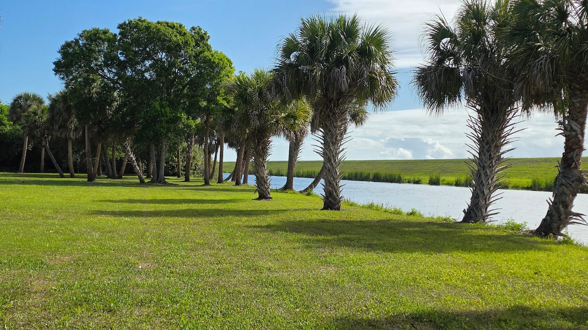 Komdu með alla fjölskylduna/vini á þennan frábæra stað með miklu plássi til að skemmta sér. Hin fullkomna paradís við vatnið. Njóttu ótrúlegs útsýnis , stórrar eldgryfju og bátsskriðs og bátarampar í bakgarðinum. Komdu með bassabátinn þinn, af hlaðinu í bakgarðinum og geymdu í bátshúsinu þar til þú ert tilbúin/n að sigla um ána Caloosahatchee eða skoða Okeechobee-vatn. Nóg af bílastæðum í boði fyrir eftirvagna báta eða ökutæki. Brighton Seminole casino í 15 mín fjarlægð. Klukkutíma akstur að annarri hvorri ströndinni!
