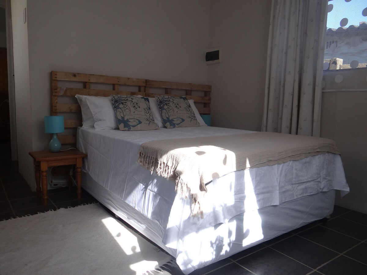 Compact, eclectic and unpretentious garden cottage in a tranquil and secluded setting.......2 kilometers away from the Indian Ocean. Private, safe and centrally located within walking distance of 7 choice restaurants. Retail stores, library and Medical Center within a 1 km radius. The shower is an experience!! Please note it's a kitchenette with a microwave, fridge, kettle and a sink. Also please read the check in and checkout times. 24 km from the Airport (19 min)