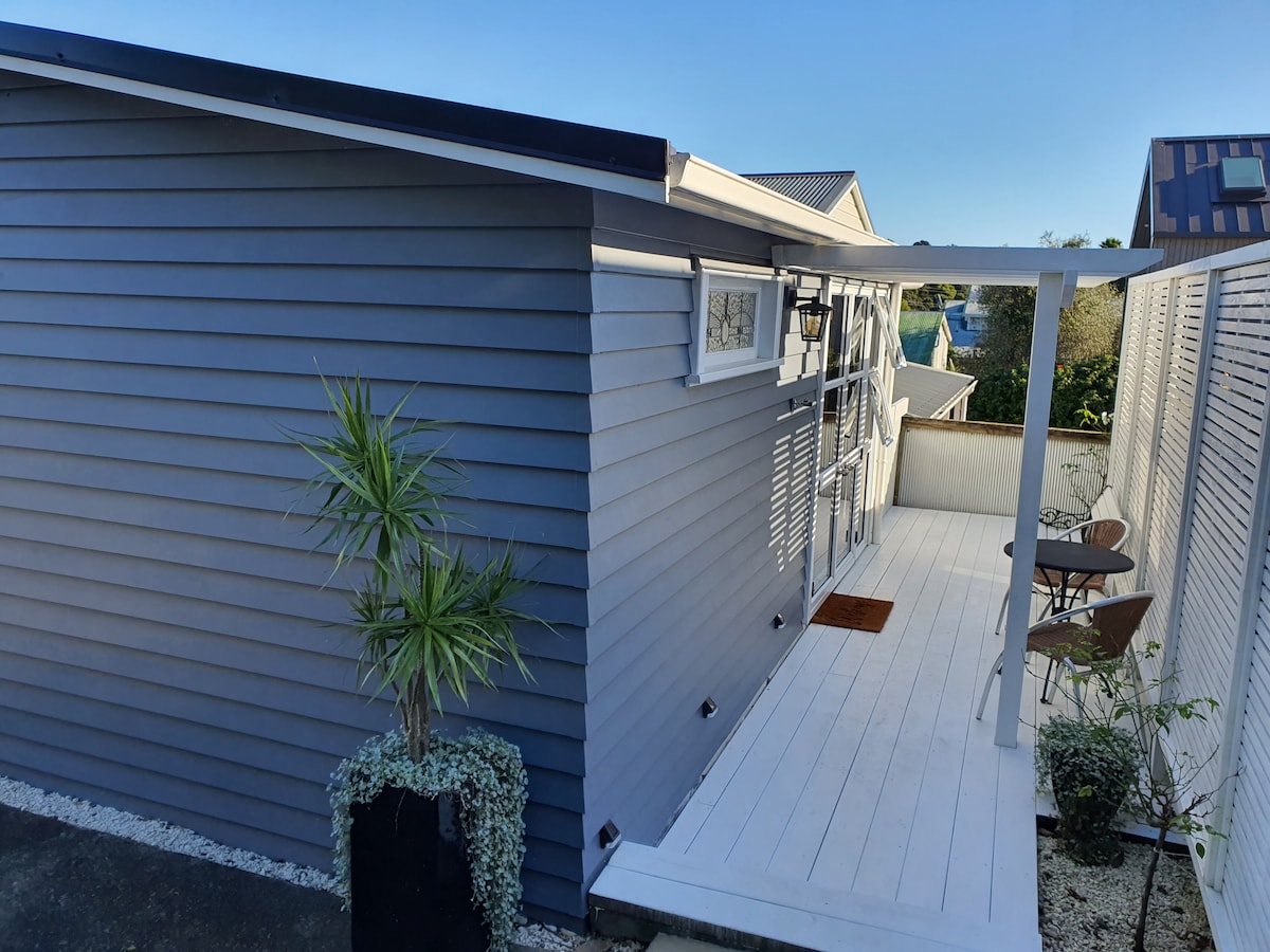 Your accommodation is a 1 bedroom self contained unit (new 2017)sited on our property. Fully insulated and double glazed there is also a heat pump for your comfort. The deck attached to the unit is for your exclusive use Public transport , bus and train are within walking distance as are a wide choice of restaurants. There is easy access to SH1 (Motorway) in both directions North and South. We offer free off street parking. We are well off the main road so the property is both safe and quiet