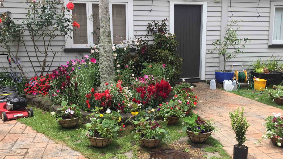 Charming peaceful sunny own small one bedroom house with sunny fenced courtyard, Queen & 1 double pullout bed, super central location to airport and CBD ground level self contained unit apartment all for yourself , your own private landscape gardens Walk 5 min to Sylvia Park shopping centre, Nz largest and train directly to CBD. Easy access to motorway and to the airport 15-20 minutes Perfect for business travellers, relocations to the city, & tourists as handy to airport and cbd