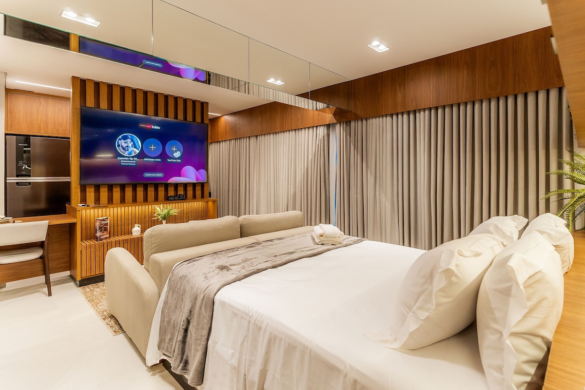 Sun Square er vel staðsett í Goiânia og er í innan við 15 mínútna fjarlægð frá helstu ferðamanna- og verslunarstöðum borgarinnar. Gistiaðstaðan okkar sameinar þægindi, fágun og persónulega þjónustu sem veitir ógleymanlega upplifun. Rúmgóð svæði og notalegt andrúmsloft gera þetta að fullkomnum stað til að slaka á og láta sér líða eins og heima hjá sér og gleðja jafnvel kröfuhörðustu gestina.