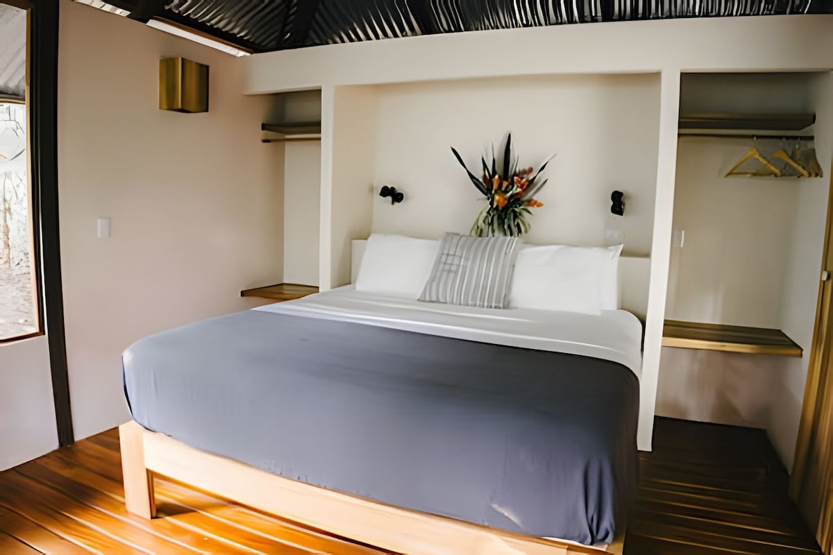 Stökktu í þetta friðsæla afdrep þar sem náttúran er í fyrirrúmi! Nested in the heart of the Osa Peninsula, one of the world's most biodiverse region. Þessi friðsæli kofi er fullkominn griðastaður umkringdur gróskumiklum frumskógi og róandi hljóðum dýralífsins. Eignin er í aðeins 15 mínútna fjarlægð frá Puerto Jimenez, hliðinu að hinum magnaða Corcovado þjóðgarði, og er því tilvalinn staður fyrir náttúruunnendur. Með fullkominni blöndu af einangrun og þægindum.