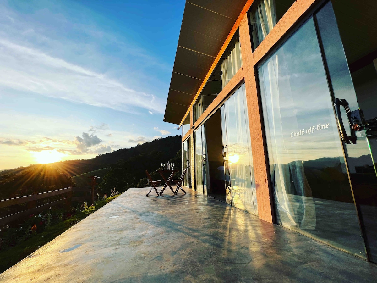 O chalé off-line é localizado no bairro mundo novo que fica a 4,6 km do centro de Gonçalves MG. próximo a deliciosa cervejaria Tereza. Com vista para a natureza e um pôr do sol incrível. Temos wi fi mas recomendamos desconectar e conectar com a natureza e os bichinhos Aceitamos pet porém é obrigatório incluí-lo no momento da reserva aqui no App