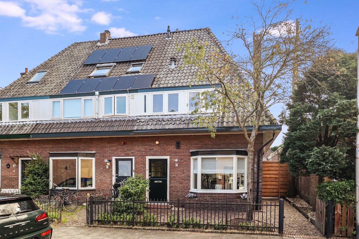 Vertu velkomin/n í eignina okkar! Húsið okkar er létt, rúmgott og þægilegt. Við erum með lítinn bakgarð. Þrjú hjól standa þér til boða. Staðurinn er á mjög góðu og grænu svæði. Það er leikvöllur við götuna og matvöruverslanir eru rétt handan við hornið. Við erum nálægt virkinu Naarden, miðju Bussum, og náttúrunni. Amsterdam er í hálftíma lestarferð frá stöðinni Naarden-Bussum, í 10 mínútna göngufjarlægð frá heimili okkar.