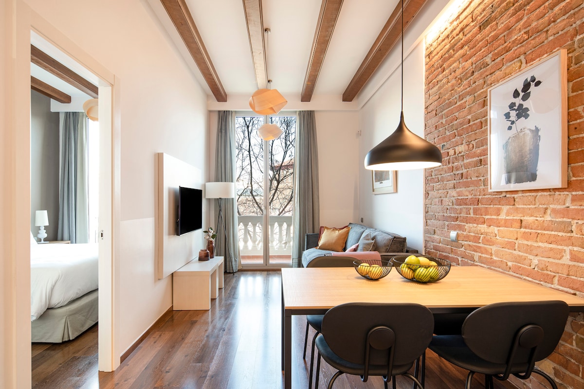 Þetta forna hús, með klassískum arkitektúr, var endurnýjað og skipt í sex lúxusíbúðir með einu svefnherbergi. Stórir gluggar, hvít örstöðugólf, hönnunarhúsgögn, eldhús sem er búið til af skápum á staðnum ásamt skápum og vinnuborðum sem hönnuð eru af byggingarstúdíói Corada Figueras, gefa innanhússviðmið og persónuleika. Spacionusness, birtustig og frábær búnaður í gotneska hverfinu í Barcelona.