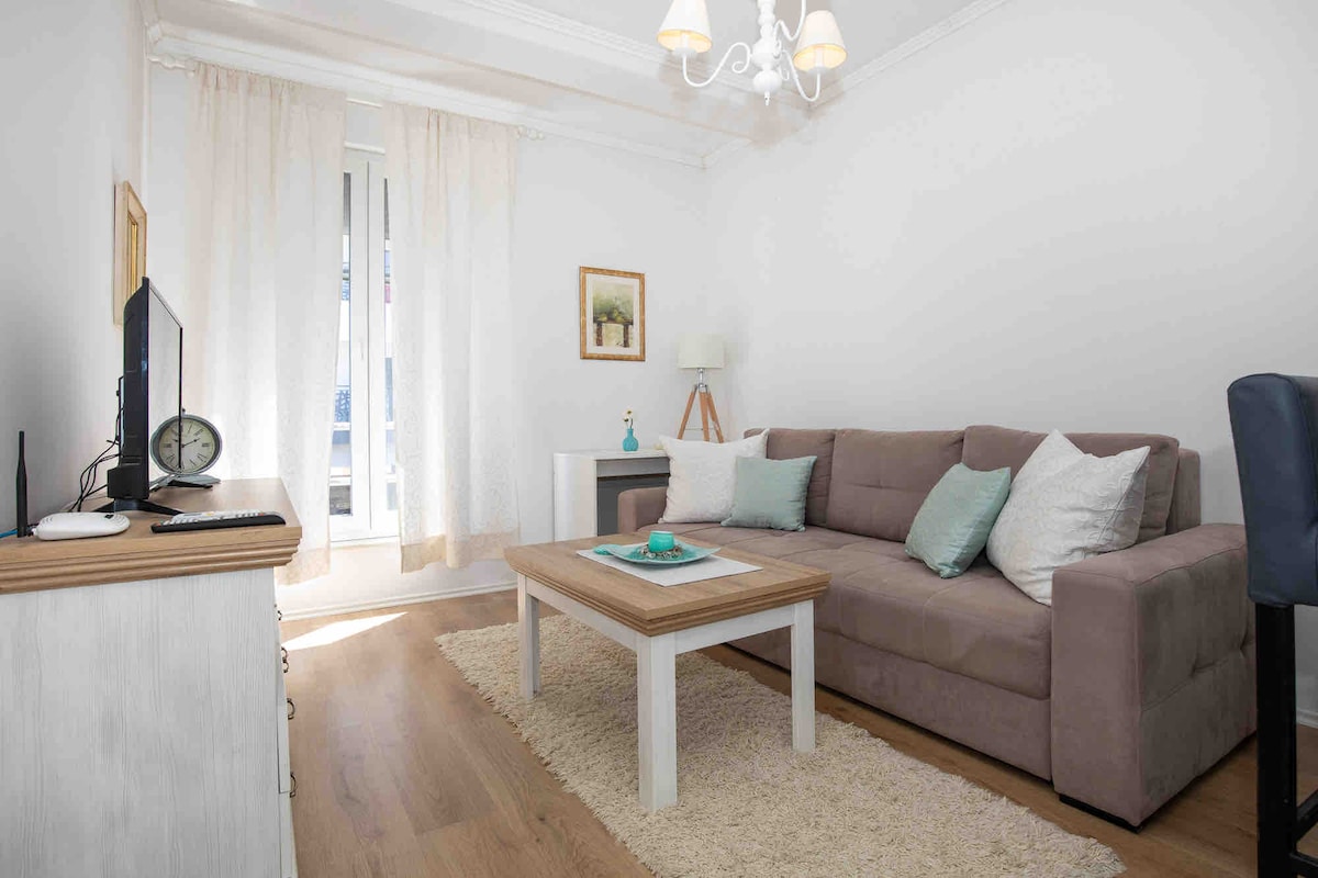 Enjoy a stylish experience at this centrally-located place in brand new building.The apartment consists of a bright bedroom with a comfy king-sized bed, dinning table for 4 persons and modern fully equipped kitchen. A sunlit living room with Smart TV. The pull-out corner in the living room can also serve as an additional bed for 2 more guests. The entire apartment was designed by architect (Adil Glavovic - axisarchiteture)