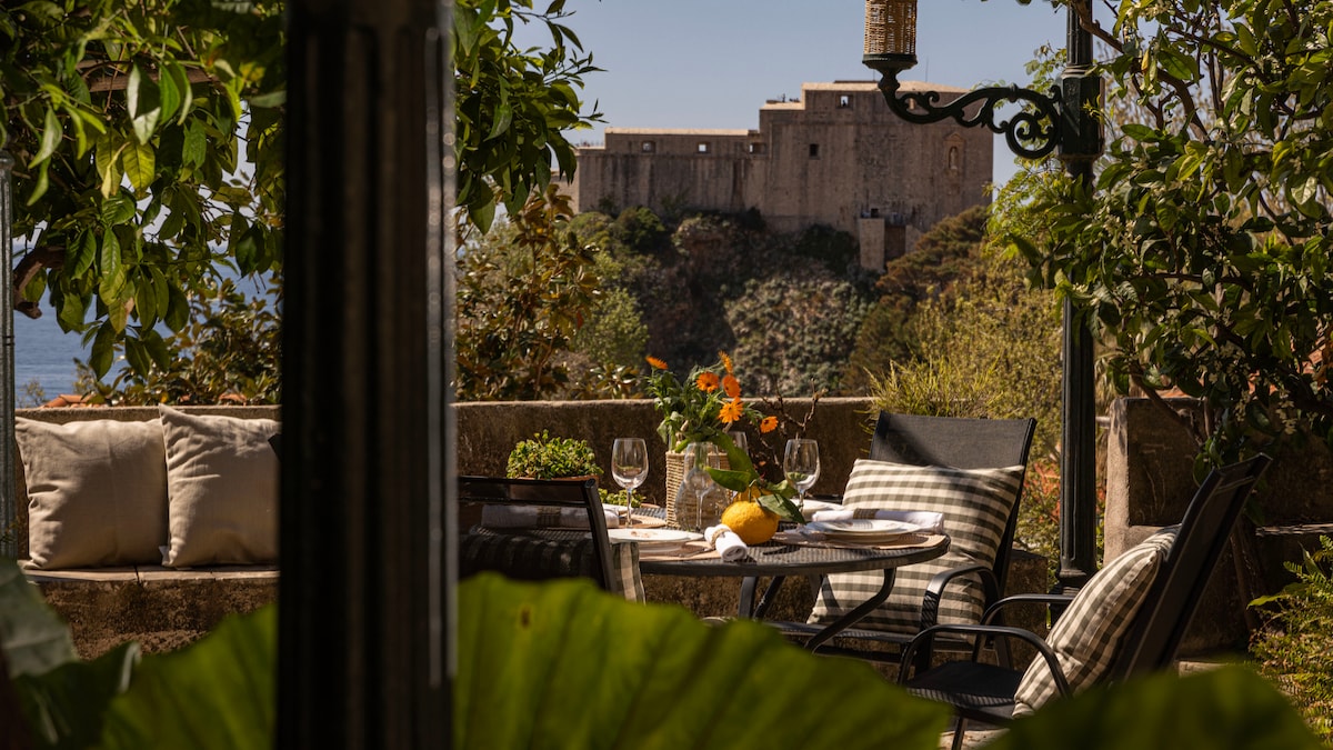 Vaknaðu við sólarljós sem streymir í gegnum þakglugga í þessari nútímalegu risíbúð með sögulegum sjarma. Sötraðu vínglas og horfðu á heiminn líða frá verönd þessarar uppfærðu íbúðar í sögufrægri byggingu. Traust þitt og öryggi er í forgangi hjá okkur! Stúdíóið er staðsett við innganginn að Buza Gate, einum af þremur aðalinngangi að göngusvæði gamla bæjarins í Dubrovnik, sem gerir komu þína vandræðalausa og þrepalausa, jafnvel með farangur.