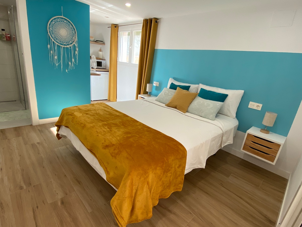 Beata habla Español. Corjito Abubilla is in an established small organic fruit farm and ornamental garden, this bright studio apartment that has a small kitchen/sitting area and en suite bathroom, is part of the main house, but you have your own terrace (with beautiful mountain views) and access to the 16 meter Swimming Pool and a private entrance to the apartment. There is also a two bedroom casita on the property. Free parking on the property. We welcome people form all backgrounds.