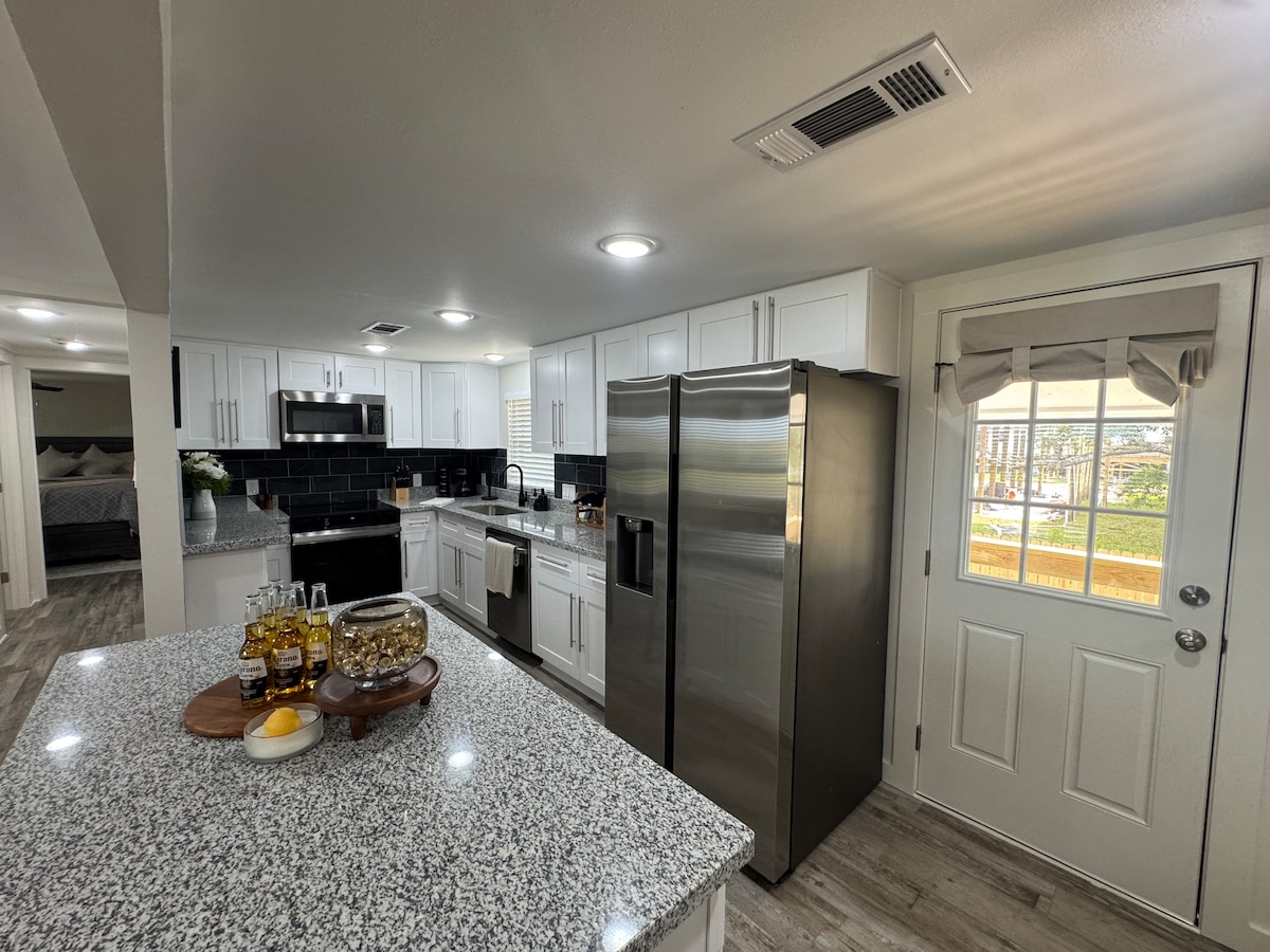 Slakaðu á með allri fjölskyldunni á þessum friðsæla gististað. Staðsett við rólega götu með útsýni yfir sólsetur við flóann. Aðgangur að strönd mjög nálægt. Öll þægindi heimilisins með aðgangi að bestu fiskveiðum í heimi! Fjölskylduvænt! Gæludýr velkomin. 2 svefnherbergi og 2 baðherbergi með fullbúnu eldhúsi, borðstofu og stofu. Snjallsjónvörp í stofu og báðum svefnherbergjum. Hratt þráðlaust net þér til hægðarauka. Þvottaaðstaða á staðnum. Yfirbyggt bátabílastæði með nægu aukaplássi.