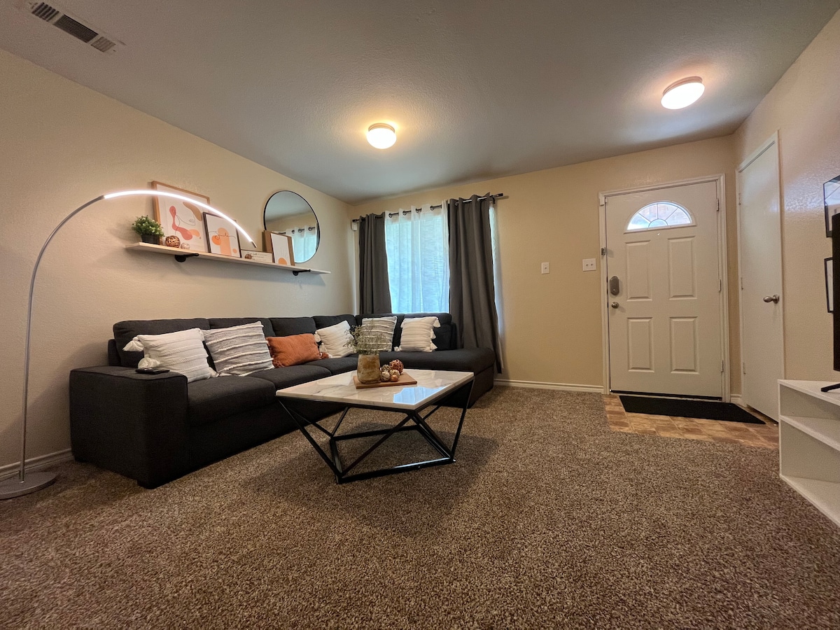 Þessi nútímalega og nýja íbúð er fullkominn staður til að skoða allt það sem Arlington hefur upp á að bjóða. Hvort sem þú ert hér vegna viðskipta eða skemmtunar finnur þú þig þægilega nálægt helstu stöðum eins og AT&T Stadium, Globe Life Field og Six Flags Over Texas. Þú færð allt sem þú þarft fyrir afkastamikla vinnuferð eða afslappandi frí með þægilegum rúmum, háhraða þráðlausu neti og fullbúnu eldhúsi. Bókaðu núna og upplifðu það besta sem Arlington hefur upp á að bjóða. *Óska eftir bílaleigu.